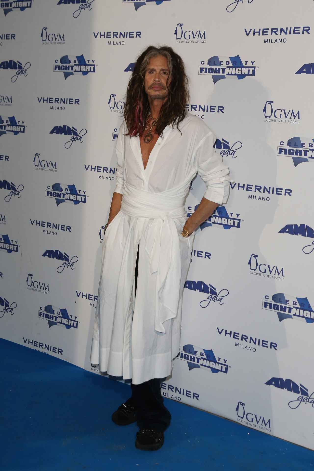 ローマで行われたチャリティイベントに参加したエアロスミスのヴォーカル、スティーヴン・タイラー。なんと彼が当日着用していたのは、まさかのドレス!?