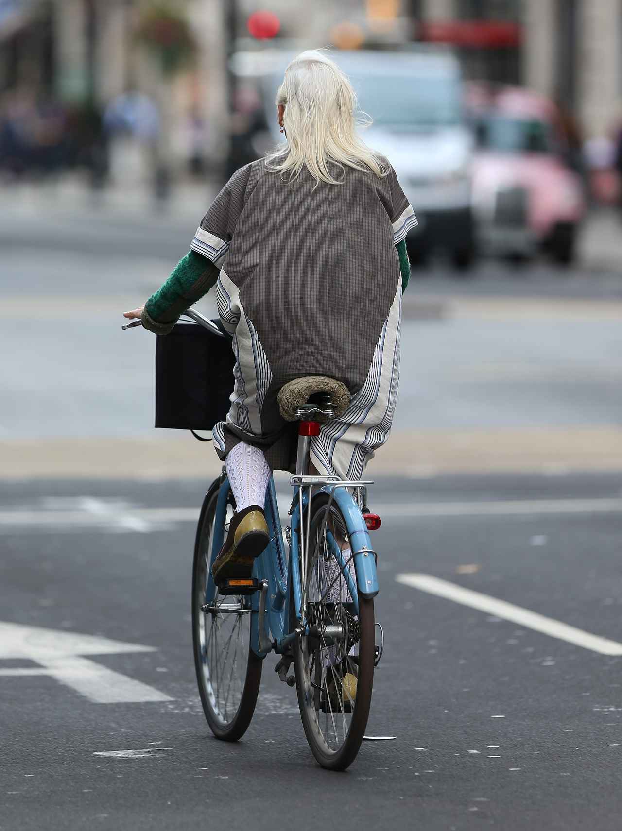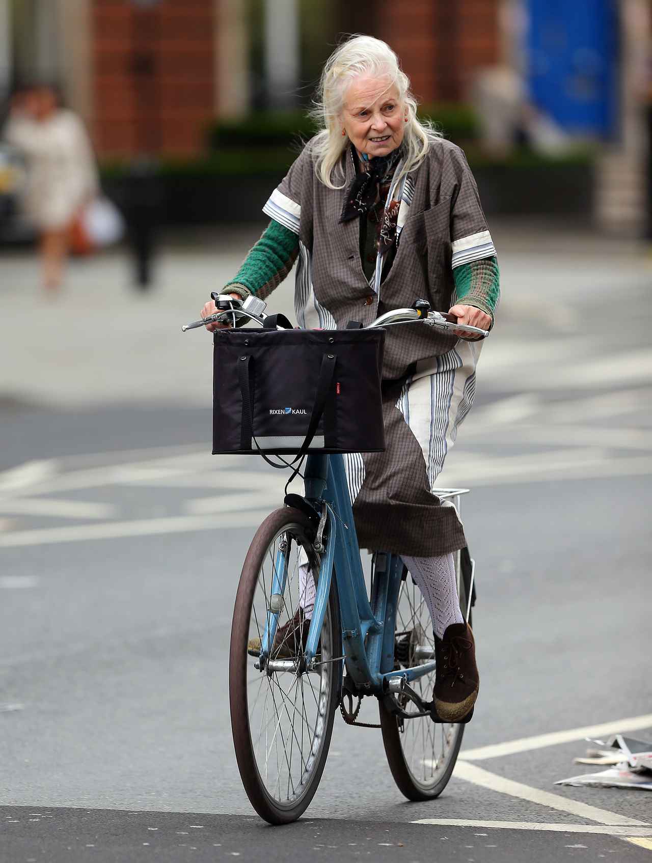 ロンドン市内で風のなか自転車をこぐ高齢の女性。この女性、よーく見てみるとまさか大物デザイナーのヴィヴィアン・ウエストウッドだった。