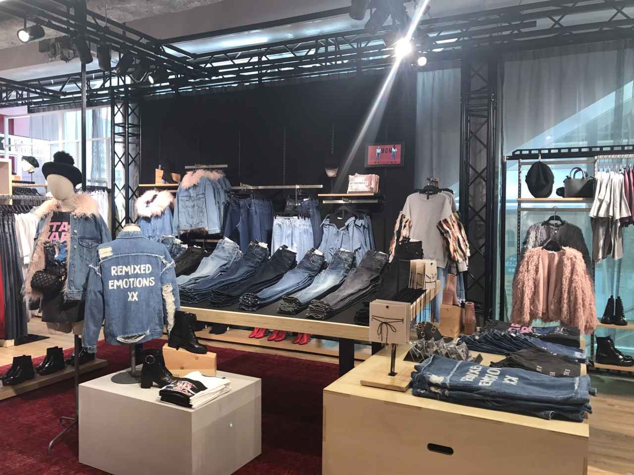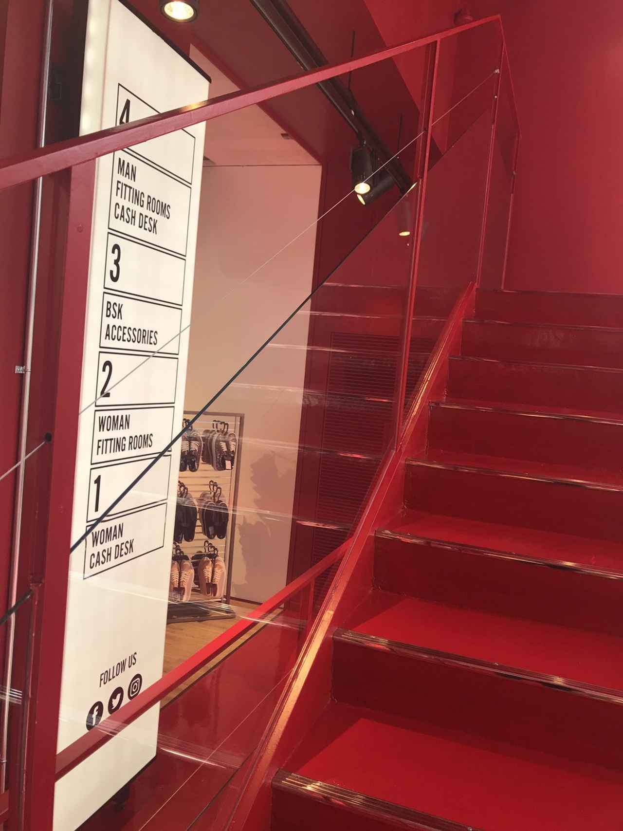 以前は黄色を全体に使った内装になっていたけれど、今回は外観から内装までとにかく赤一色!じつはこれ、Bershkaには欠かせない要素である「MUSIC」が関係しており、内装はコンサート会場のバックステージからインスパイアされている。