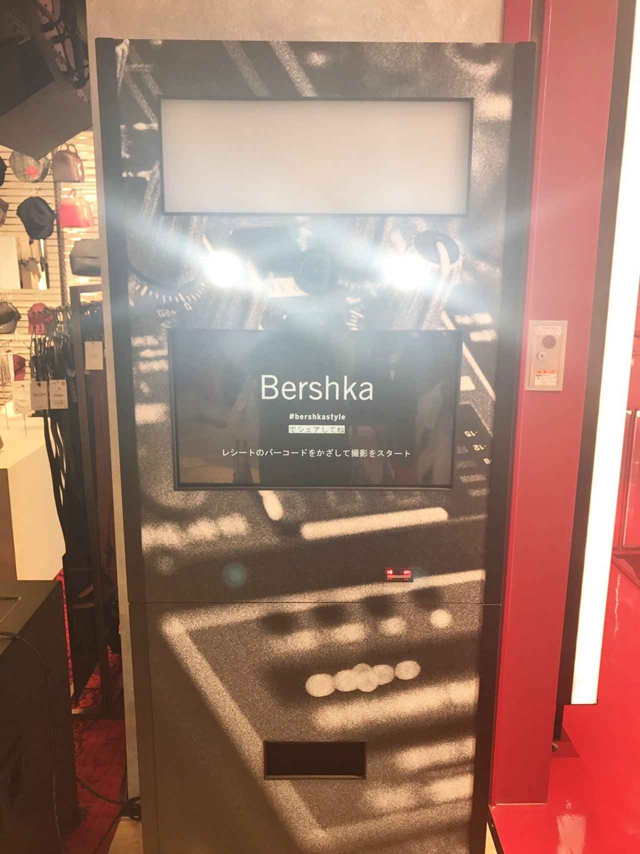 なんと店内には、Bershkaでアイテムを購入した人限定で撮れるプリクラ機が設置されている。買った時のレシートのバーコートをかざすと、そのまま無料で撮影ができるというもの。これは日本初の試み。