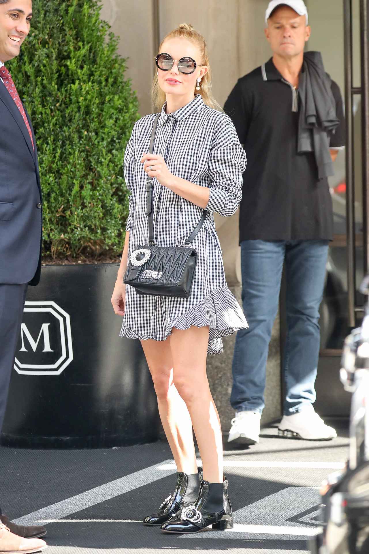 映画『アリスのままで』で知られる女優のケイト・ボスワースは、大人可愛いスタイルが得意。この日、ニューヨークのホテル前で車を待っているケイトはキュートなギンガムチェックのワンピースで登場した。