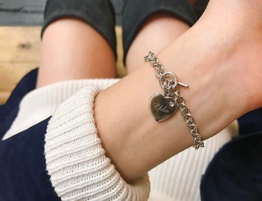 「クロー」という名前入りブレスレットはトーマスからのプレゼント。©Dove Cameron