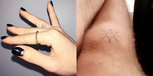最近、ダヴの右薬指に入っていた太陽のマークのタトゥーをトーマスがマネする形でおそろいのカップルタトゥーが完成。