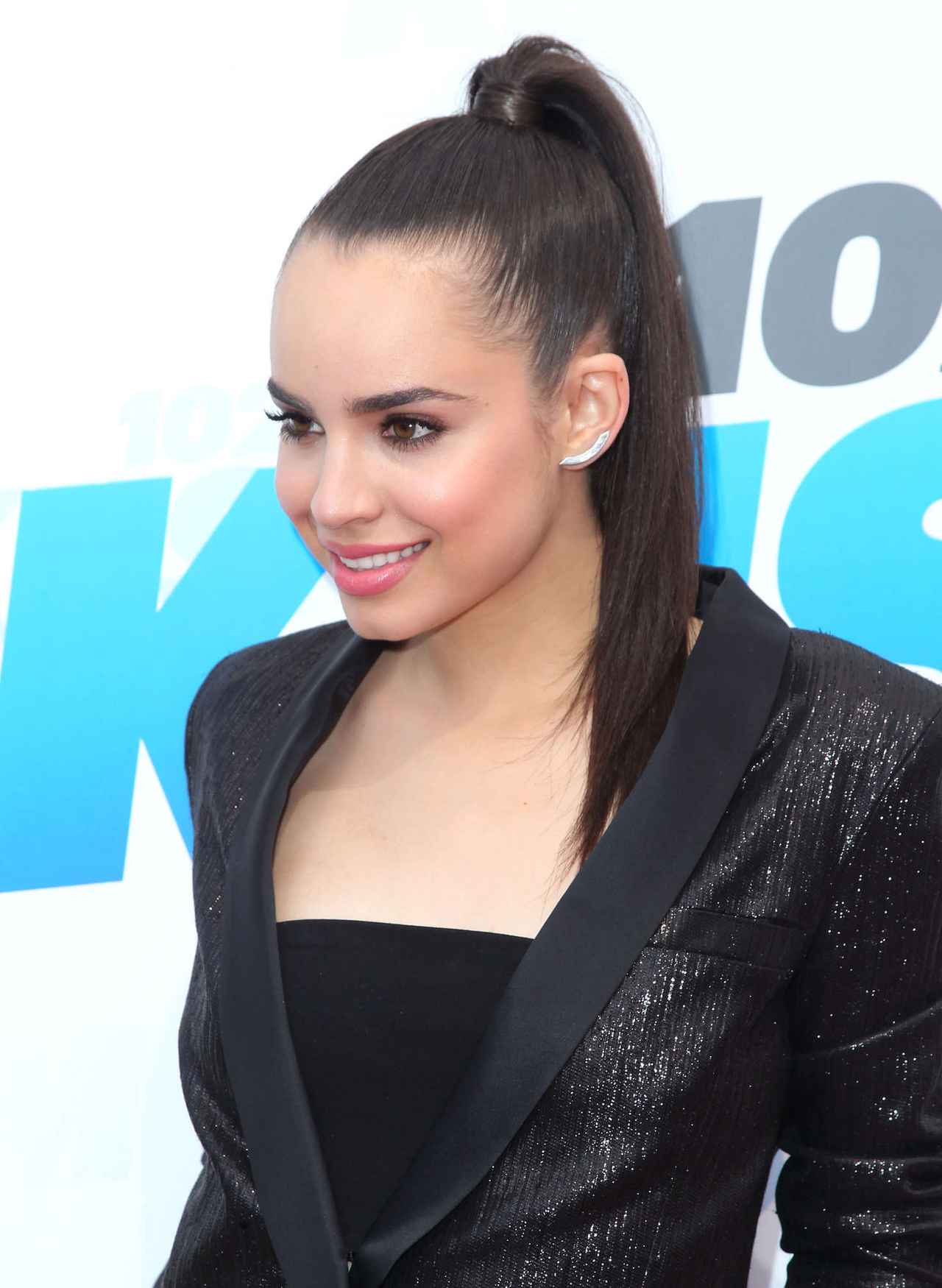 ダークブラウンヘアがトレードマークのソフィアは、さらさらのストレートヘアをきゅっと結んだ“ハイポニー”で、モードでクールな印象に。