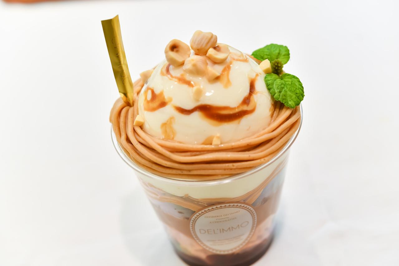 サクサクのパイ生地と洋梨のゼリーを忍ばせ、たっぷりのモンブランクリームでデコレーションされたパフェ。