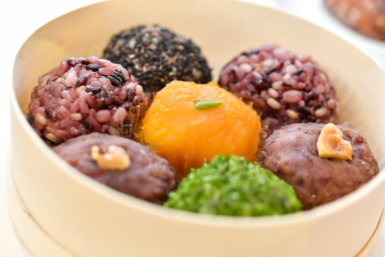 わっぱに入れたプチサイズのおはぎ詰め合わせ。