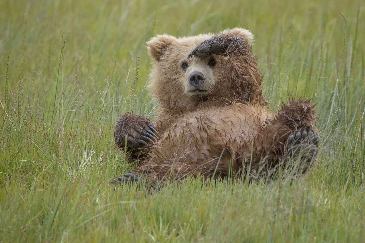 アメリカ、アラスカ州の国立公園に生息する野生のクマがした、驚きのポーズに胸キュン。