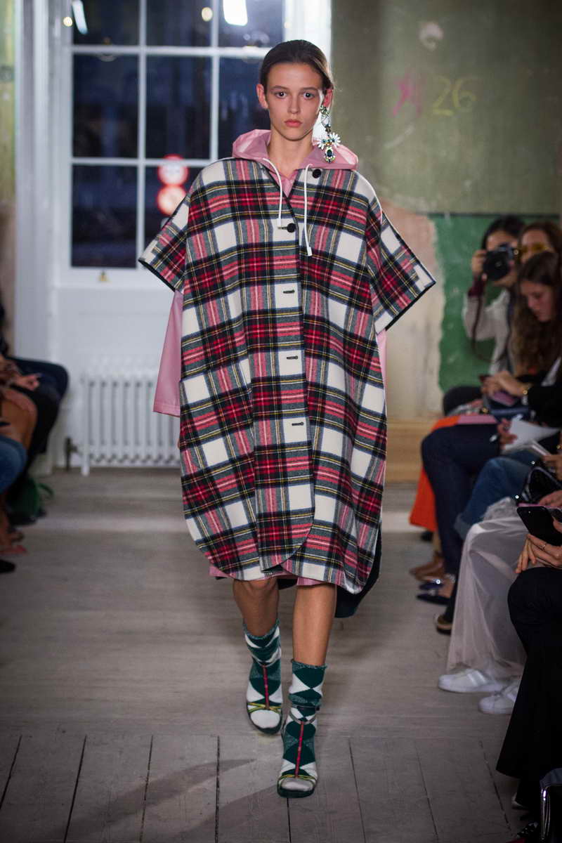 「British Photography」がテーマの新コレクションでは、アラン、フェアアイル、アーガイルなどのニット、バーバリーのシンボルであるギャバジンや60 年代に使われていたヴィンテージチェック、タータンといった伝統的なパターンや素材が、英国らしいエクレクティックで意外性のあるスタイリングで登場。