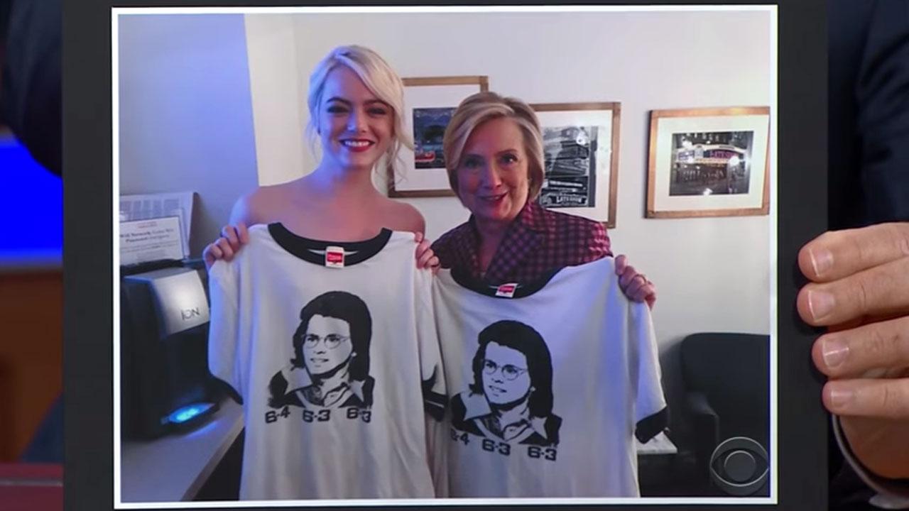 女優のエマ・ストーンがヒラリー・クリントンと記念撮影した際におかしてしまったあるミスとは?