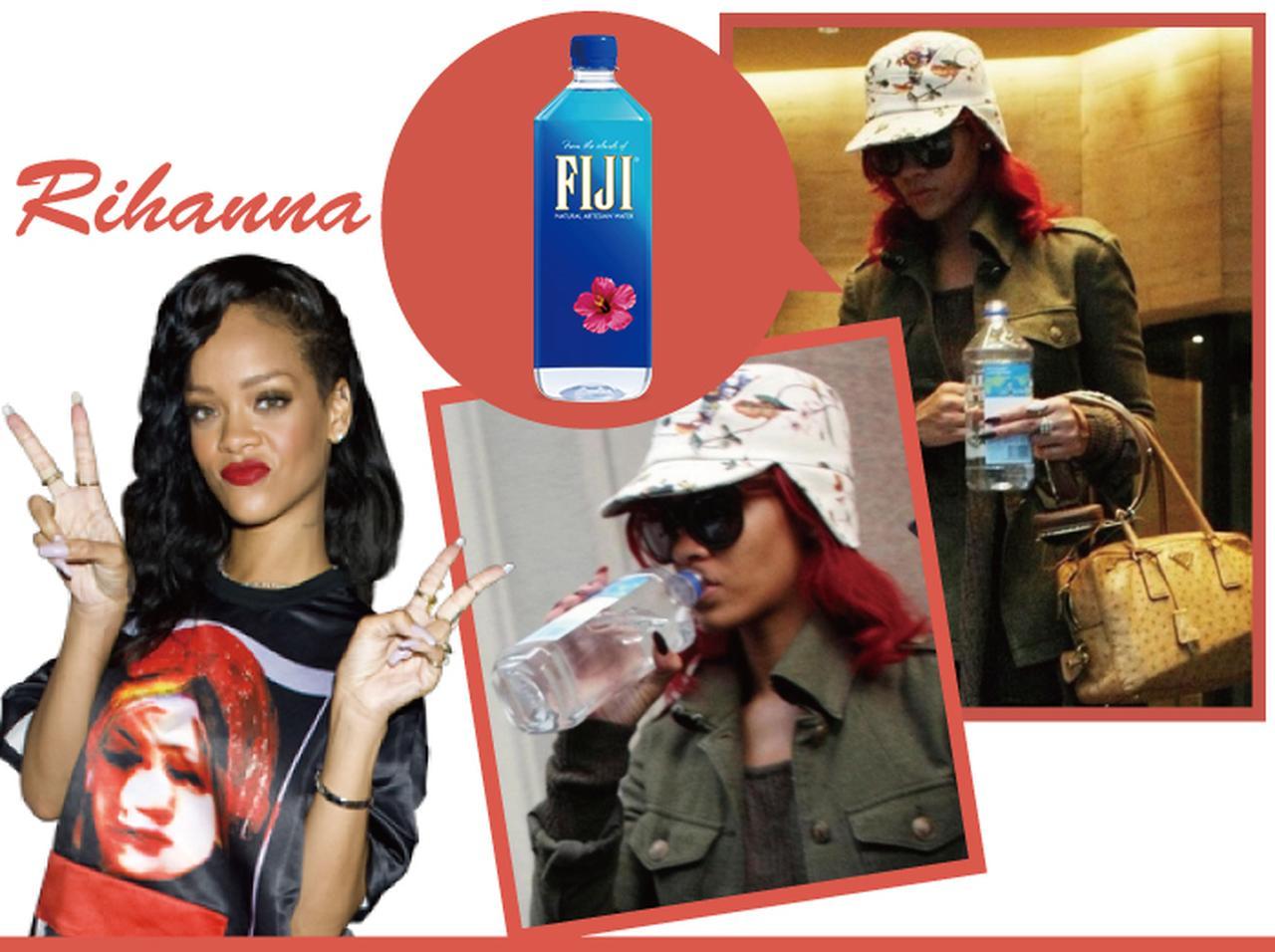 トップシンガーでトレンドセッターのリアーナは、移動中もスタイリッシュなフィジーウォーターを!