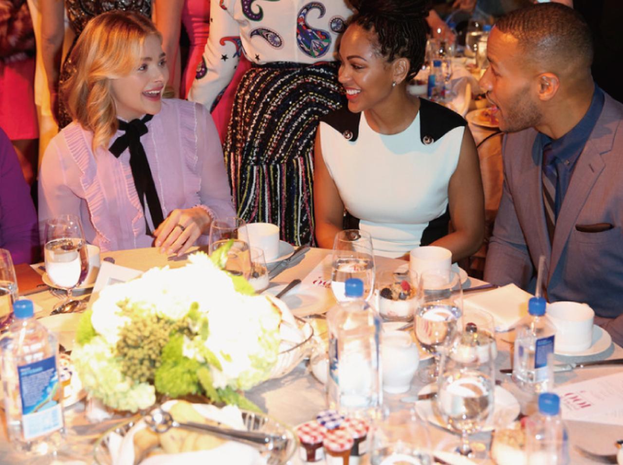 セレブが集まるパーティ会場にスタイリッシュなフィジーウォーターのボトルが。女優のクロエ・モレッツ(左)と女優のミーガン・グッド(中央)