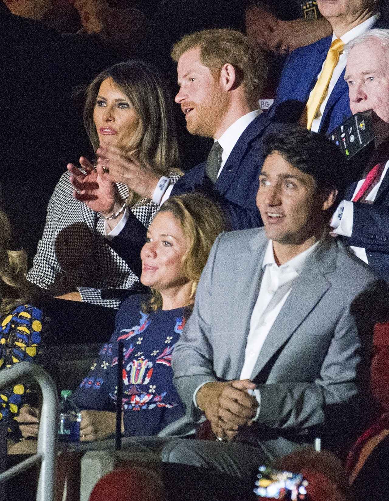 トルドー首相夫妻の一列後ろに座ったヘンリー王子は、メラニア夫人に何やら真剣そうに説明をしていた。