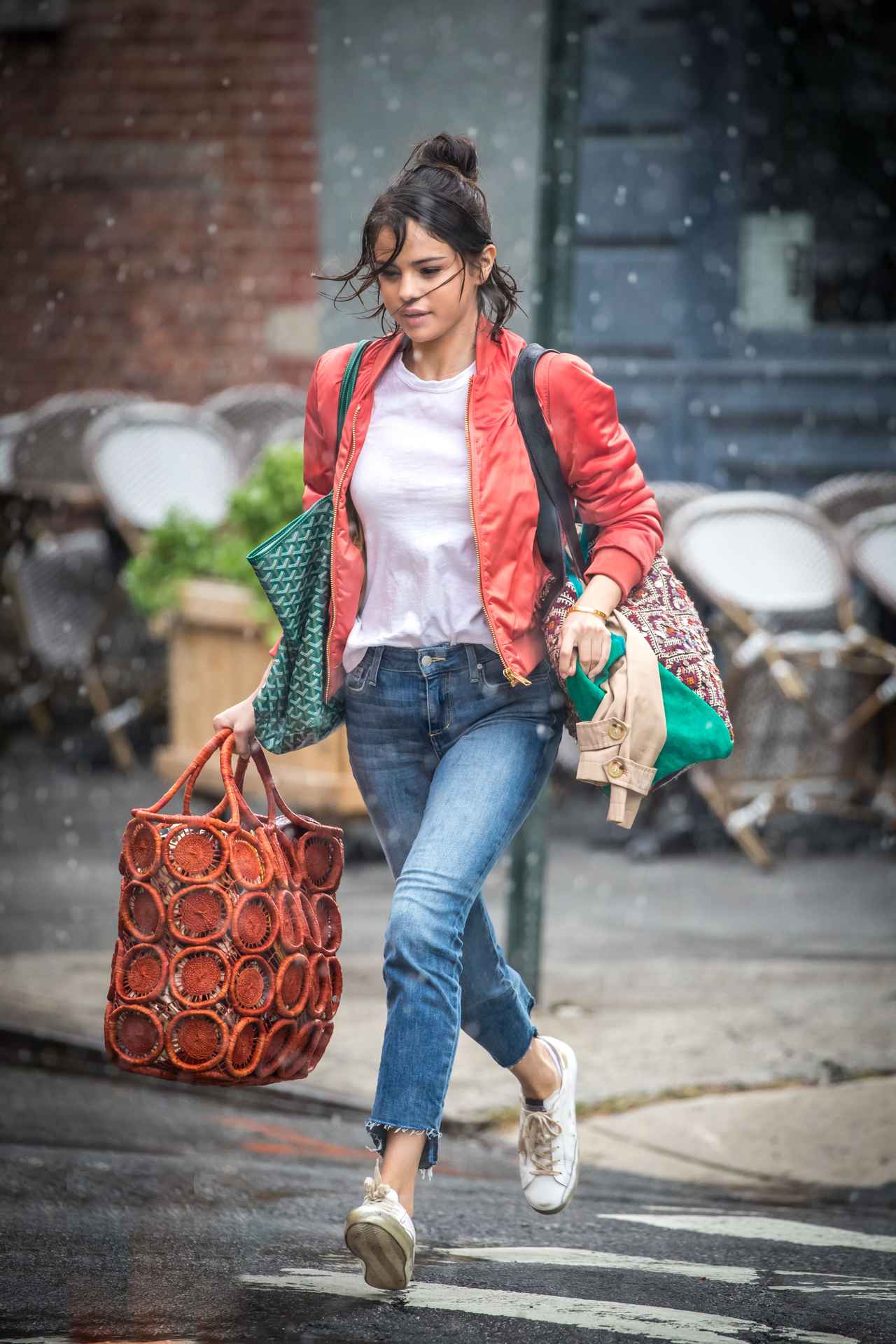 現在映画の撮影を行っているセレーナ・ゴメスの、ストライプジャケットで撮影現場へ向かう姿を発見。