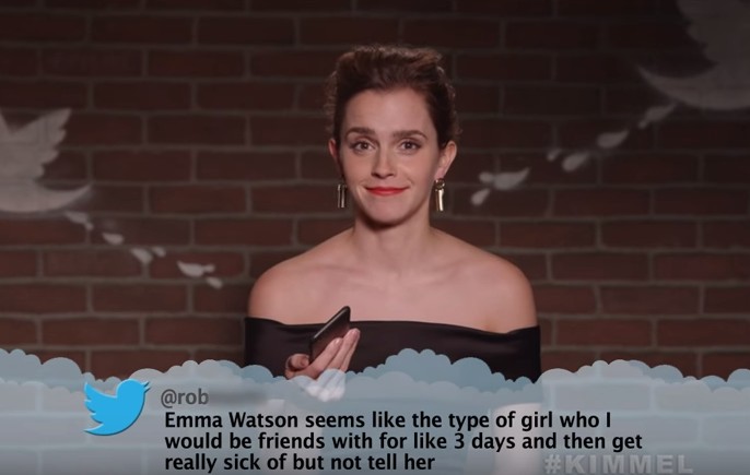 エマはとくにコメントをしなかったものの、時折笑みを浮かべながら朗読。ちなみに、彼女に対して書かれた悪口はコチラ。