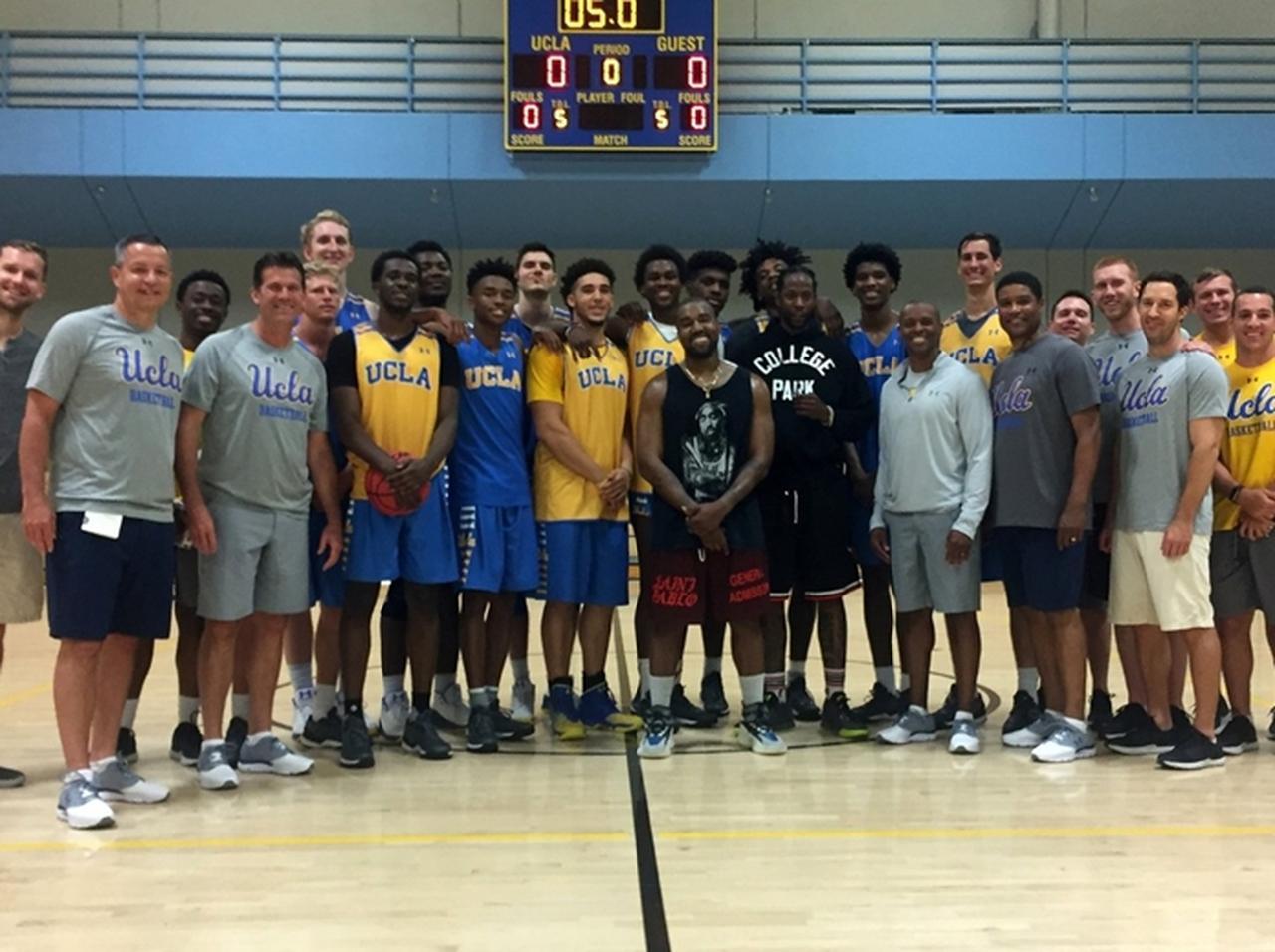 今年7月に大学の体育館で生徒たちと。©UCLA Man’s Basketball Club/Twitter