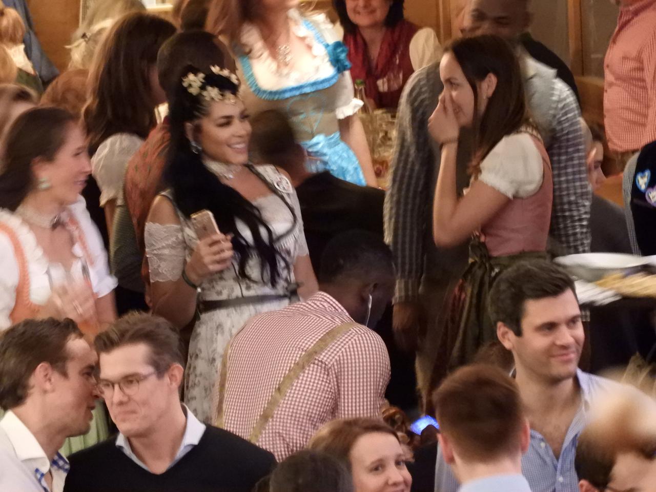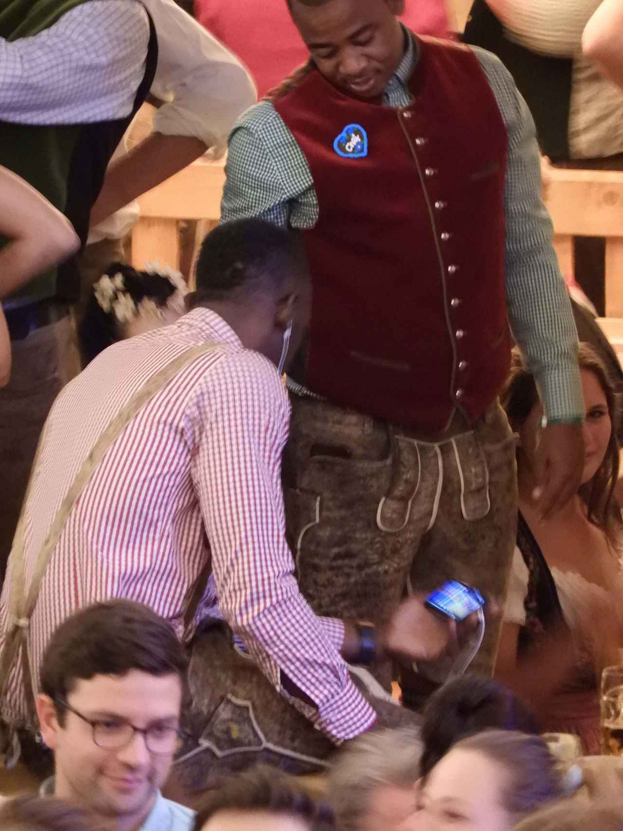 会場には美女が多く女性は全員、民族衣装に身を包んでおり、見ているだけでも楽しいオクトーバーフェストなのに、ボルトは1人スマホを見つめている。