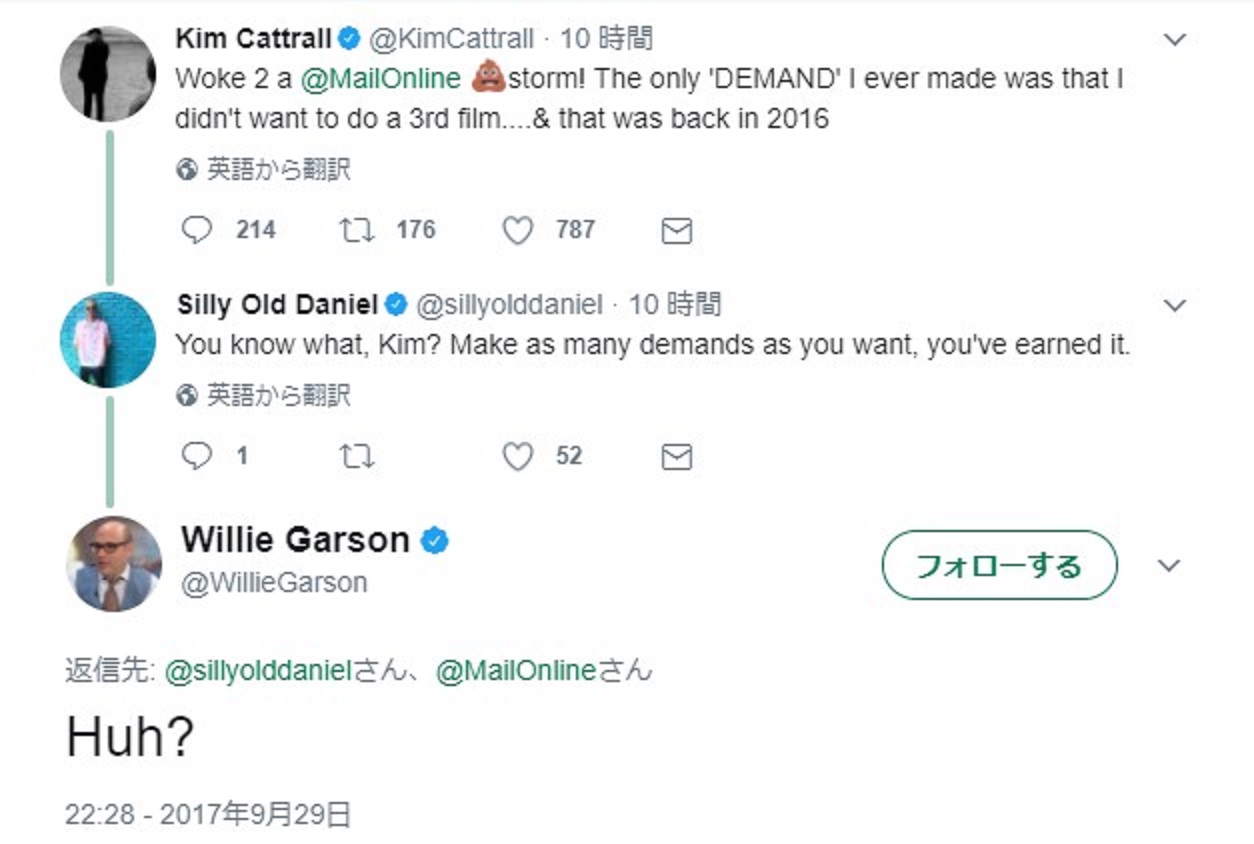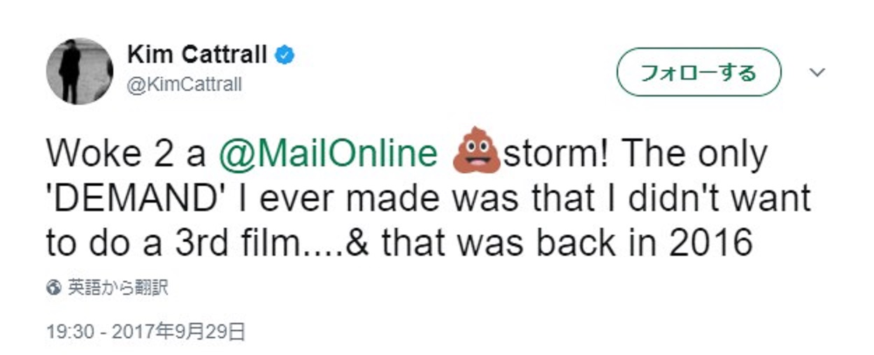 「朝起きてデイリーメールが発端の炎上にビックリした! 私が『要求』したのは3作目には出演したくないっていうことだけ…。しかもそれは2016年の話だし」。
