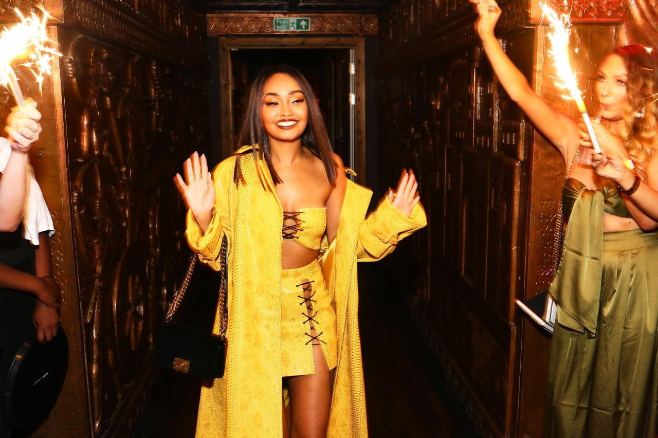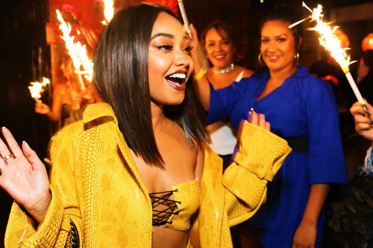 会場にリーがやってくると、花火を持ったリトル・ミックスのメンバーほか、エラ・エアなど多くの友人たちがお出迎え。