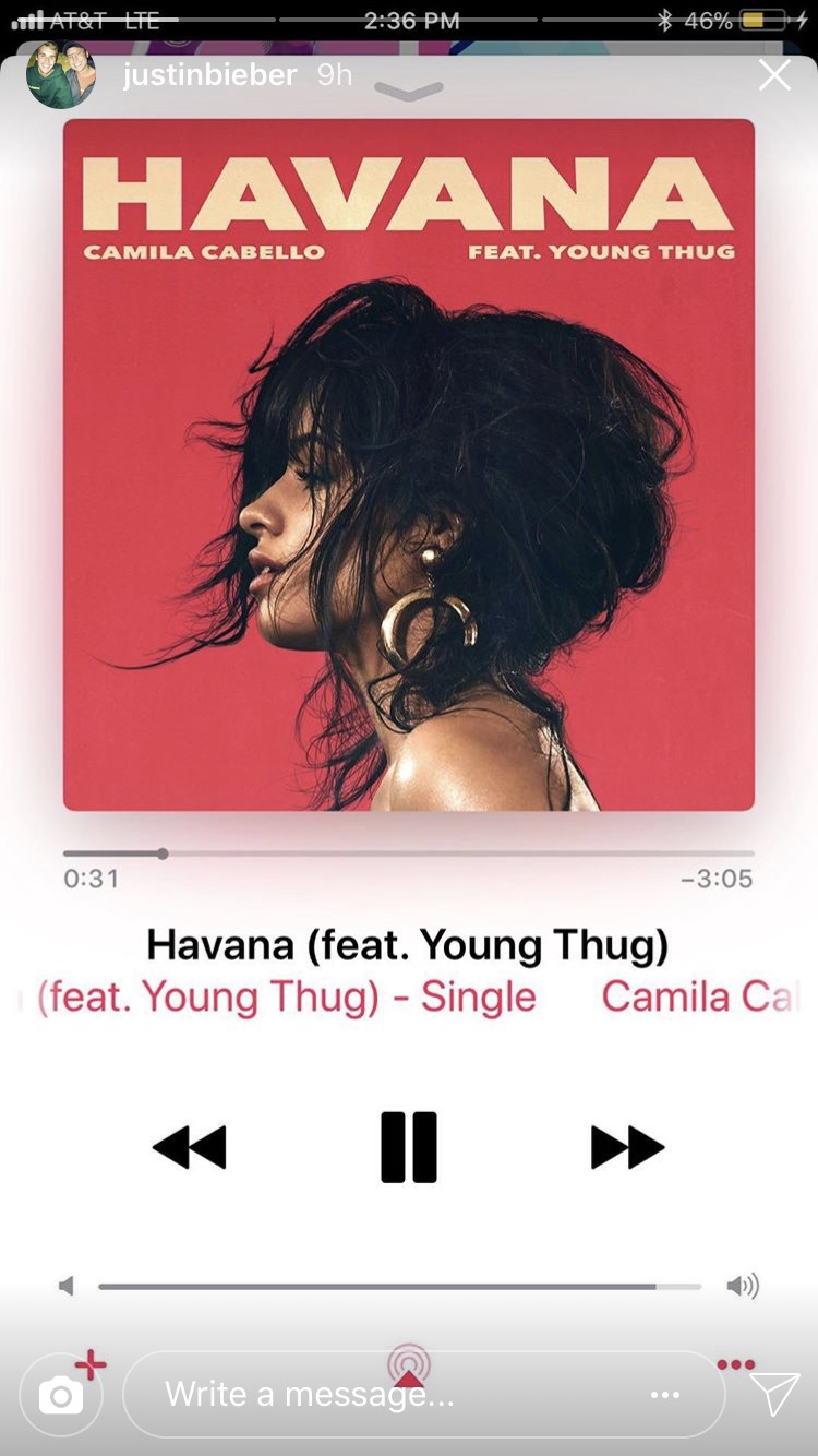 ジャスティンは先日、自身のスマホで「ハバナ」を聴いている画面をスクリーンショットし、それをインスタグラムストーリーにアップ。するとそれに気付いたカミラは、かなりビックリしたようで、自身のスナップチャットにこんな動画を投稿した。