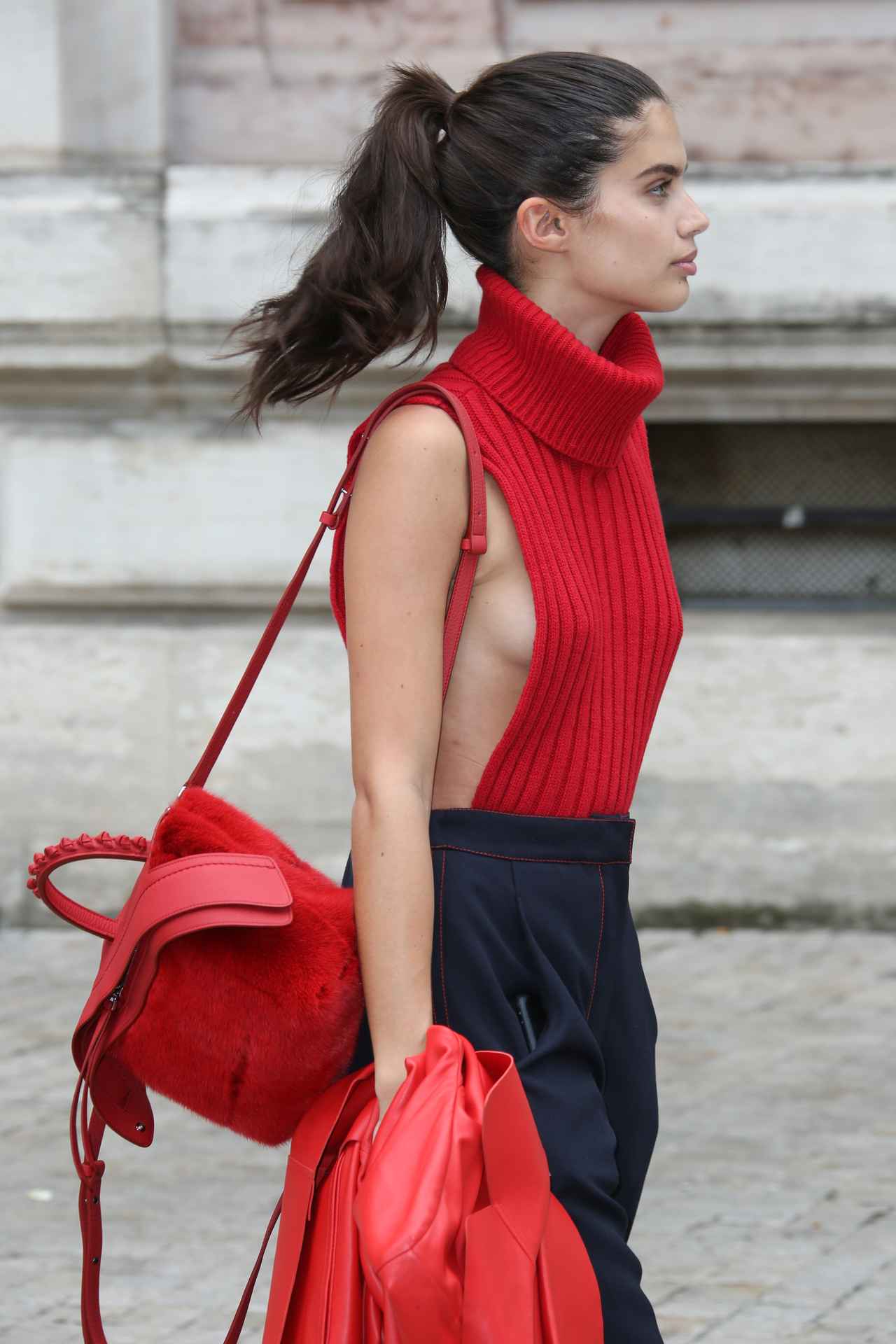 ヴィクシー・モデルのサラ・サンパイオ、きわどいニットで横乳をチラ見せ