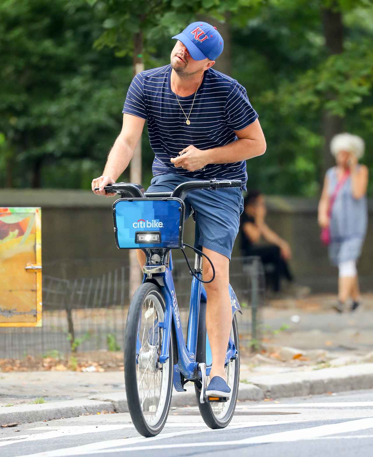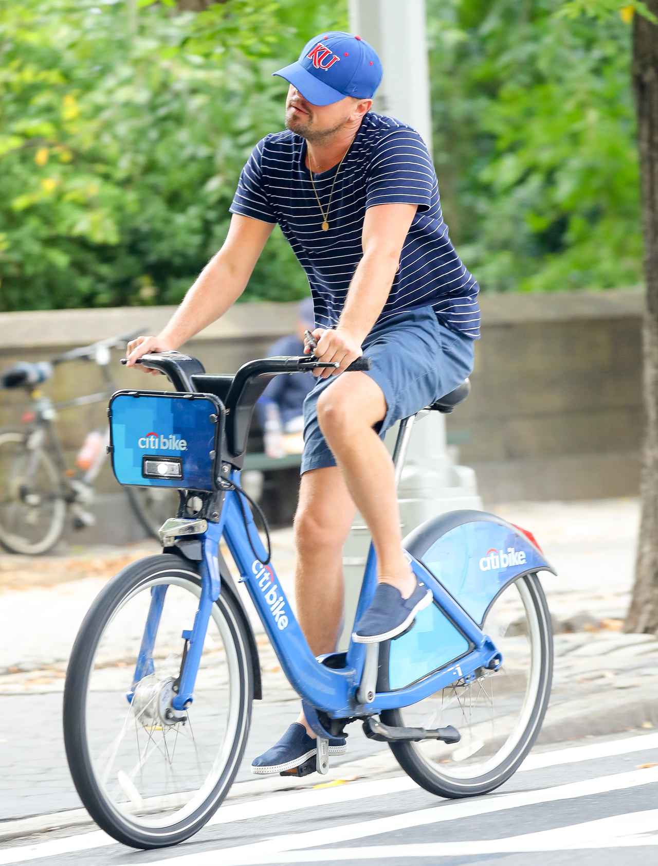 この日、NYの街中を自転車ですいすいと走っていたレオナルドは、途中でサングラスを外すと、顔を隠すためにある秘策を決行。