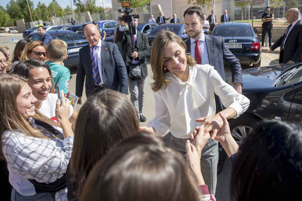 オシャレなファッションにも定評があるスペイン王室のレティシア王妃は、スペイン・テルエルにある高校の職業トレーニングコースのオープニングを訪問した。そんな日にレティシア王妃が選んだのは、清潔感あふれるパンツルック。