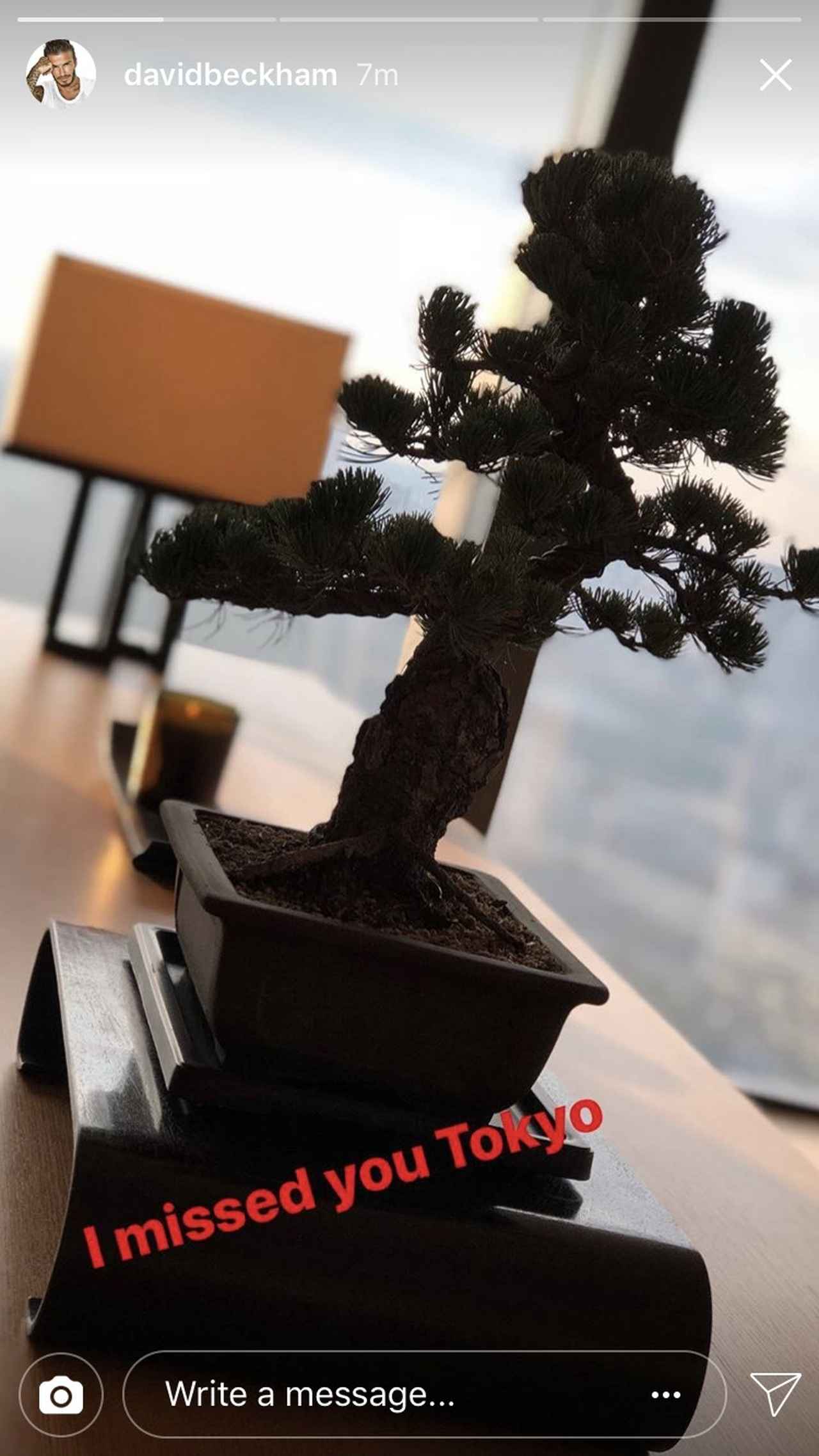 「東京が恋しかったよ」とコメントをつけて、盆栽の写真を投稿したデヴィッド。