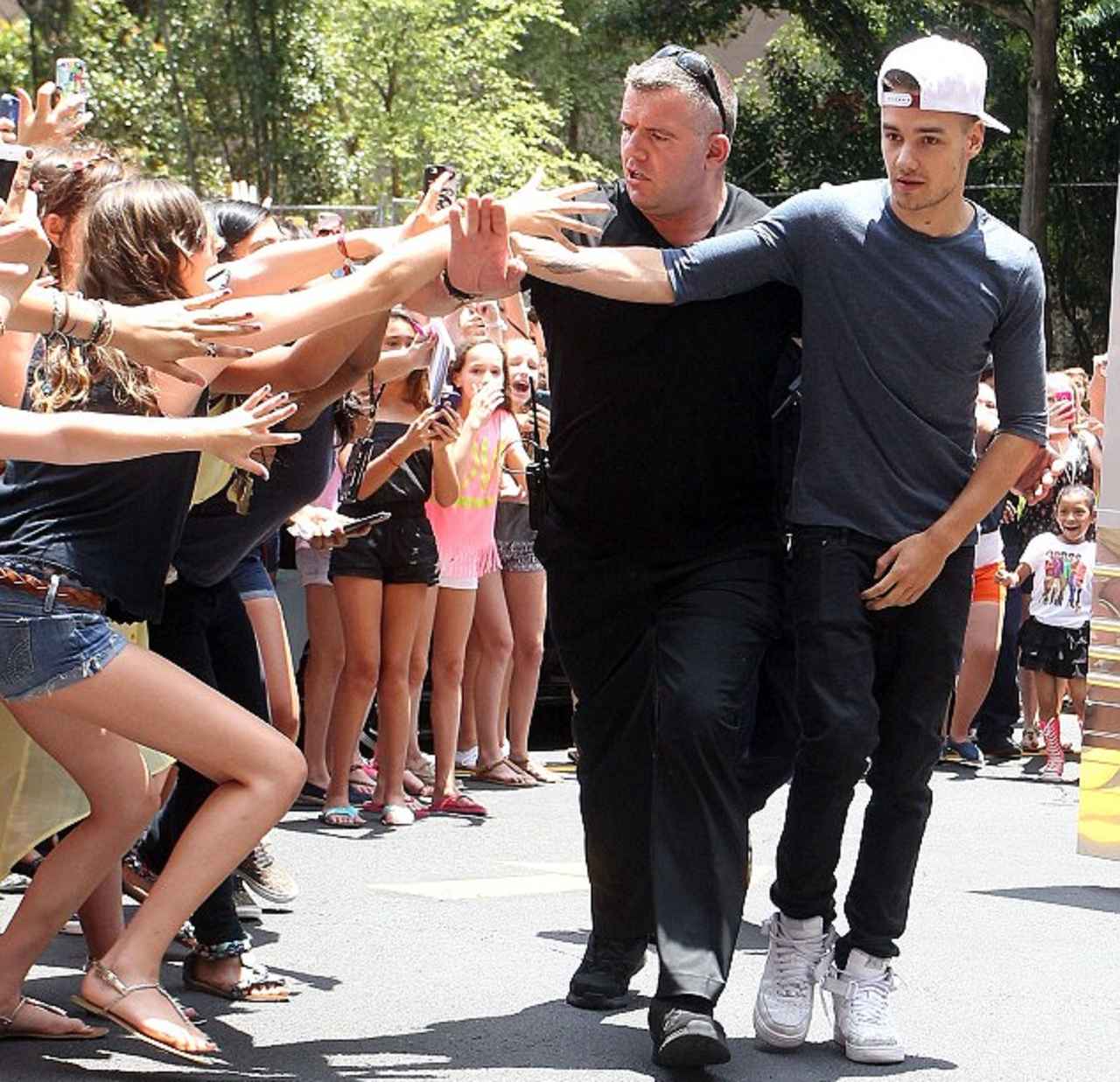 リアムに触れようと近づくファンたちを制止するボディーガード。