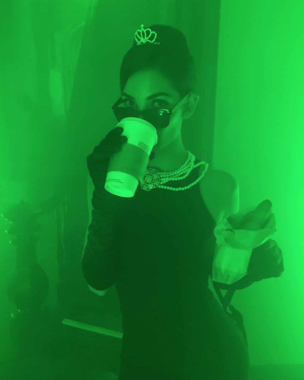 映画『ティファニーで朝食を』で女優オードリー・ヘップバーンが演じた主人公ホリーに仮装したのは、ヴィクシー・モデルのリリー。