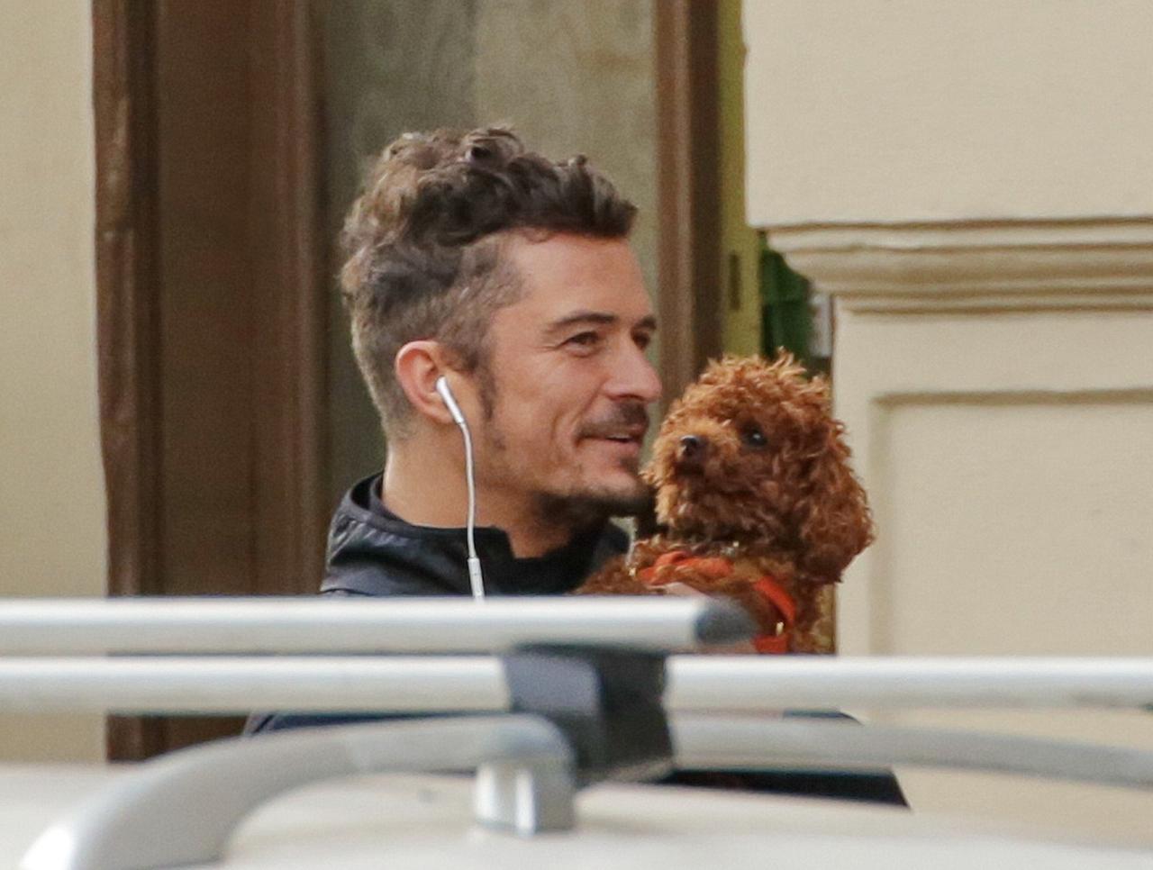 TVドラマの撮影のためにチェコ・プラハに滞在中のオーランドの傍らには、愛犬マイティの姿も。仕事先にまでマイティを同行させているあたりに、オーランドの愛犬家ぶりがうかがえる。