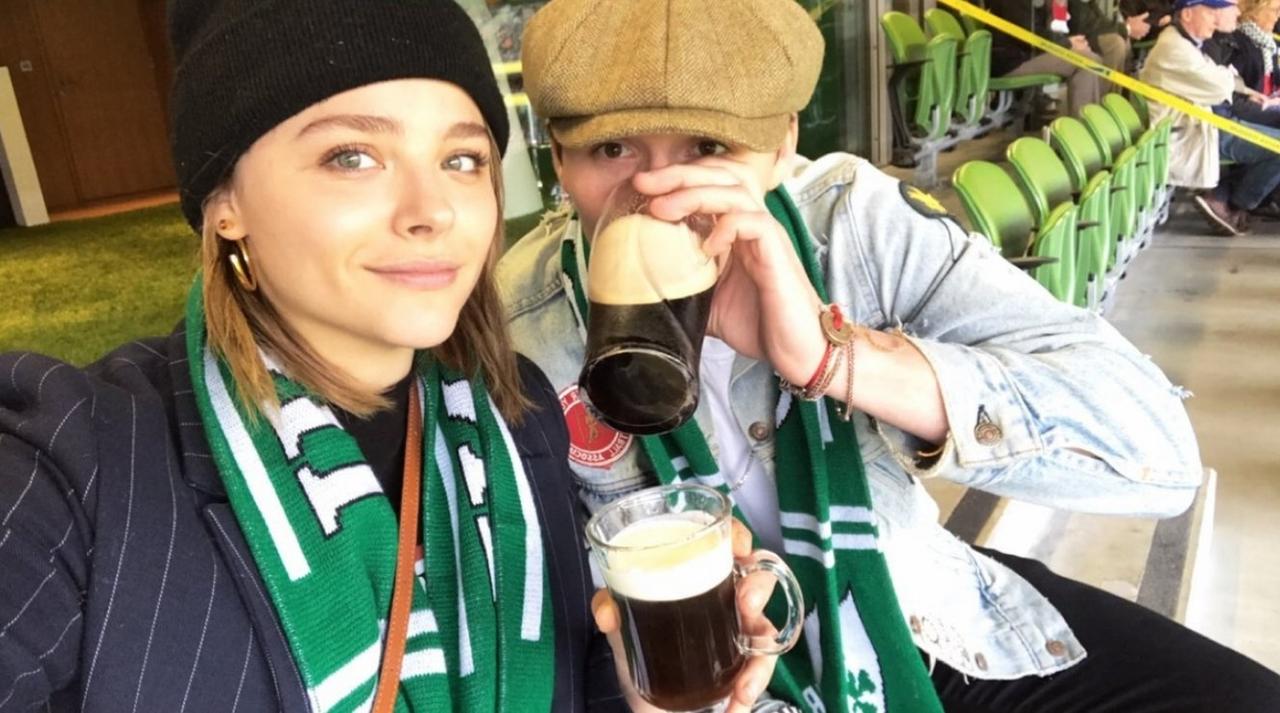 この動画は、現在、最新映画『ザ・ウィドウ』の撮影のためにアイルランドに滞在しているクロエの元をブルックリンが訪れ、首都ダブリンでラグビーの試合を観戦した際に撮影されたもの。