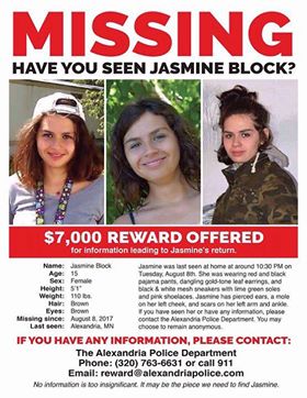 警察の発表によると、発見された15歳のジャスミン・ブロックは、1ヵ月ほど前に家族ぐるみで付き合いがあった知人男性によって誘拐され、この男性の自宅に連れて行かれたという。両手を縛られて軟禁状態にあったジャスミンは、男性とその友人2人から性的暴行などの被害にあっていたことが明らかになっている。