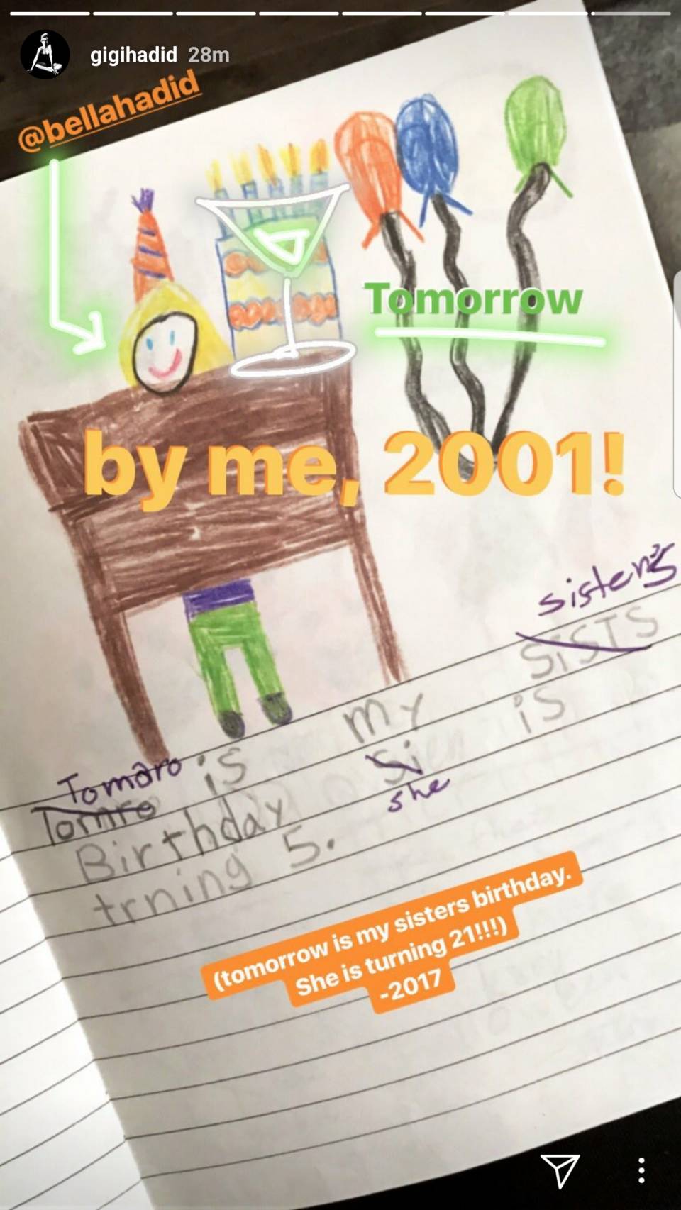 大人気モデルのジジ・ハディッドが、16年前に妹のベラ・ハディッドの誕生日を祝った絵日記を公開。それは、姉から妹への愛情が詰まった特別な絵日記だった。