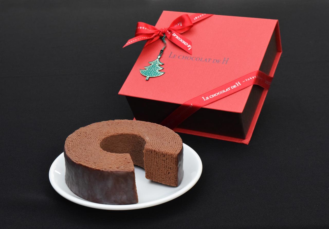 厳選したショコラを使用し、何層にも重ねてしっとりと焼き上げたショコラバウムクーヘンをクリスマス限定ラッピングで。