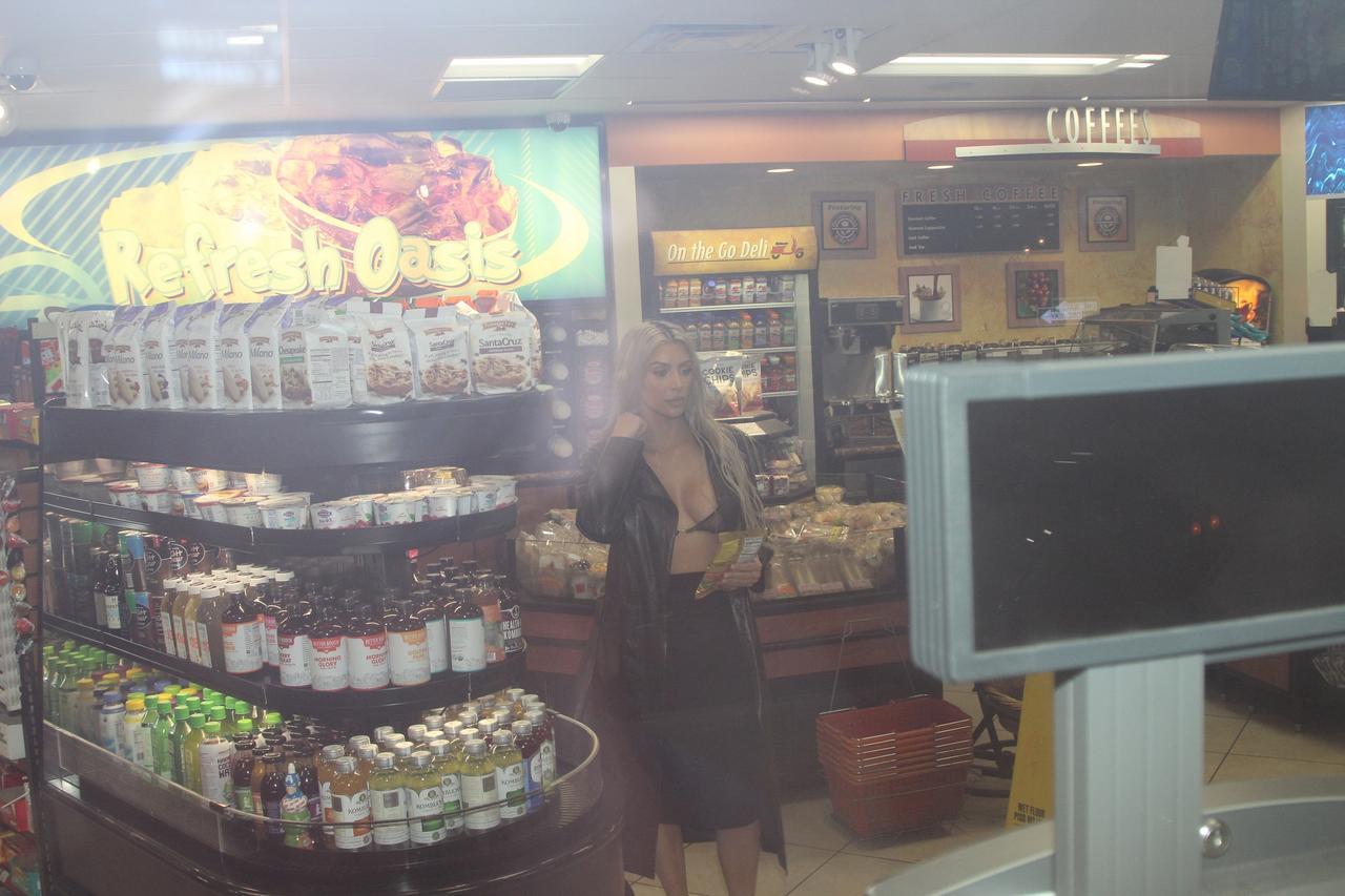 普段から肌を露出した挑発的なファッションを好む、人気リアリティスターのキム・カーダシアンが夜にコンビニへ買い出しへ。
