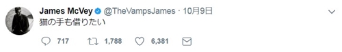 東京での初日公演の前日に渋谷を訪れていたジェイムズが、何の前触れもなく日本語で「猫の手も借りたい」とツイート。
