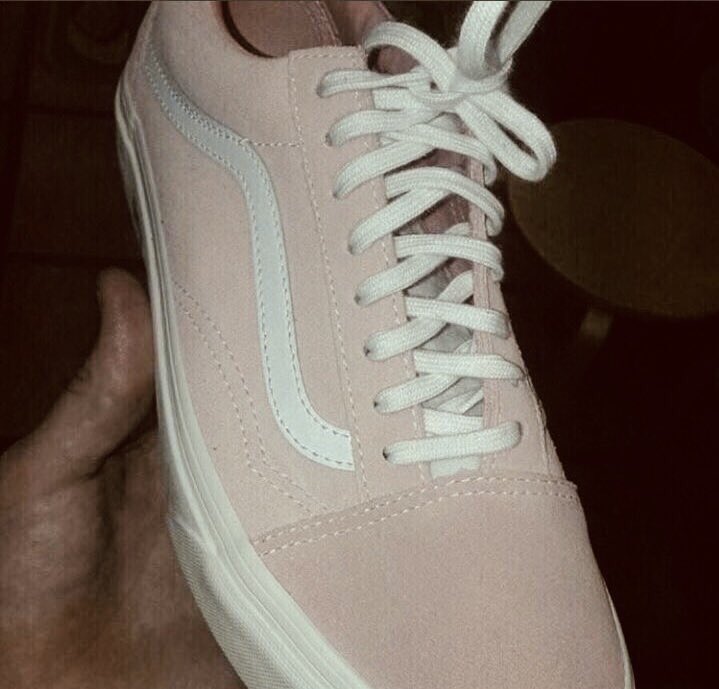 元々はパステルピンク地に白いラインが入ったスニーカーだが、画質の悪いカメラとフラッシュのせいで、なぜか見方によってはグレー地にミントという組み合わせにも見えるように写ってしまったよう。