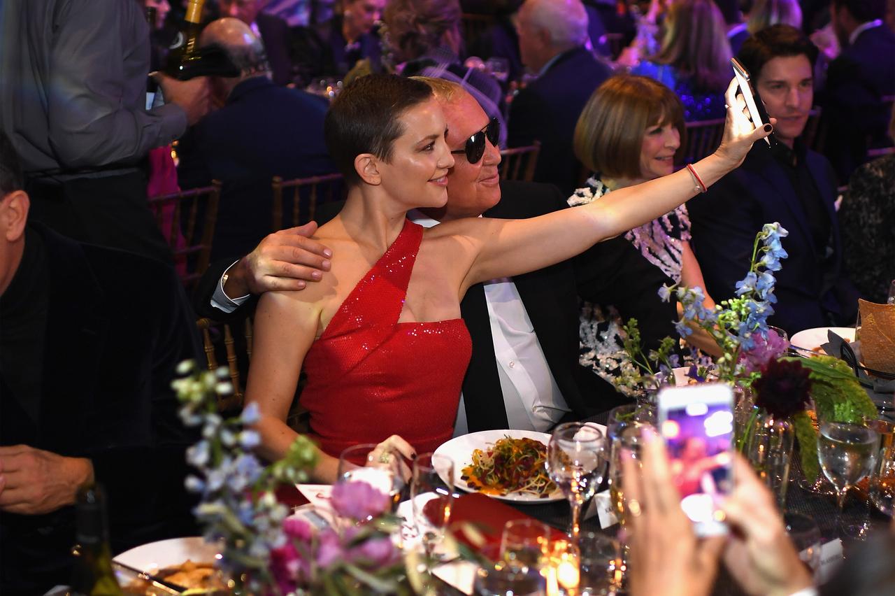 女優のケイト・ハドソン。セクシーなワンショルダーに、真っ赤なスパンコールがゴージャスなマイケル・コースのドレスで会場を魅了した。