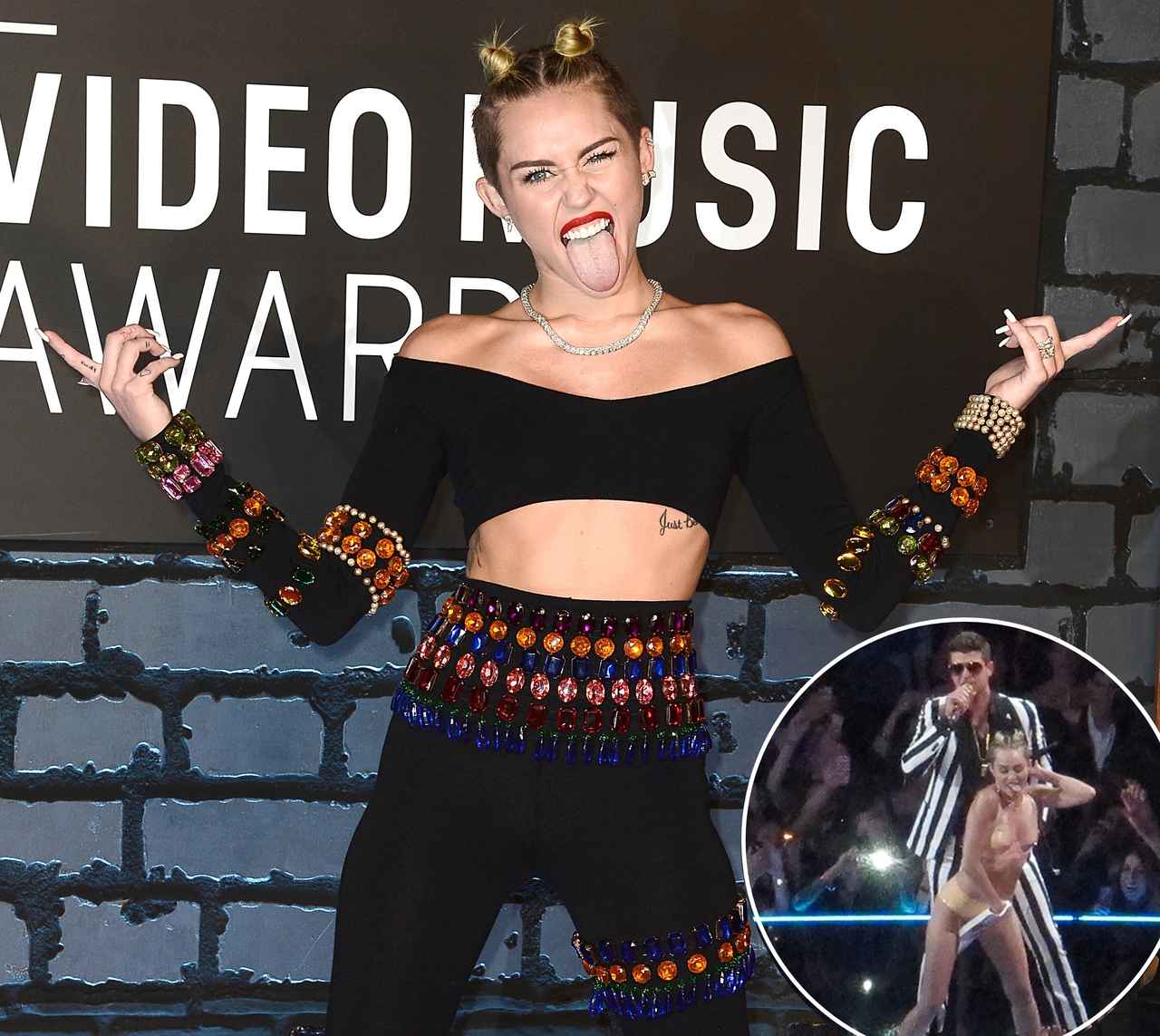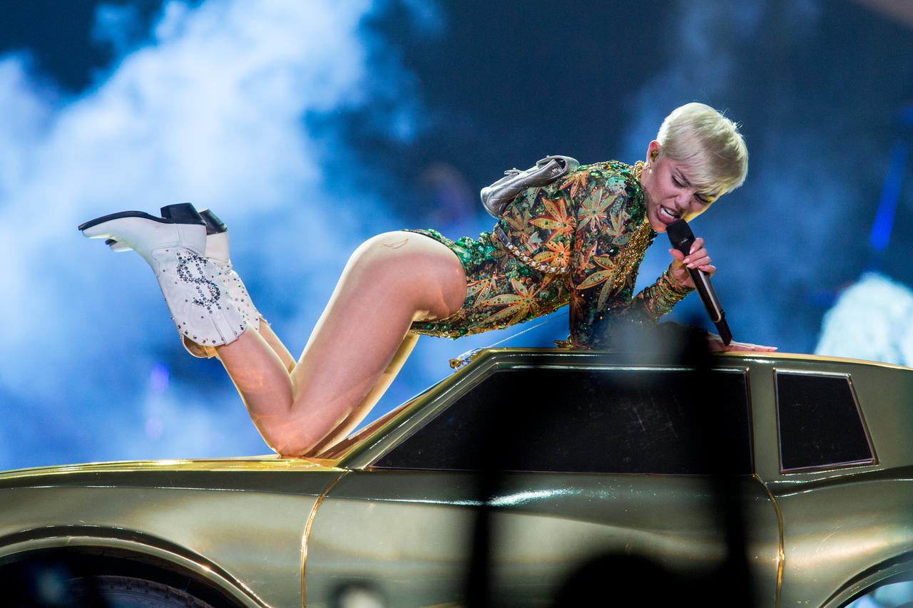 音楽祭MTV VMAで舌をベロベロっと出しながら超エキセントリックなパフォーマンスを見せ、ワイルドキャラが確立。マイリーが新時代に突入する。