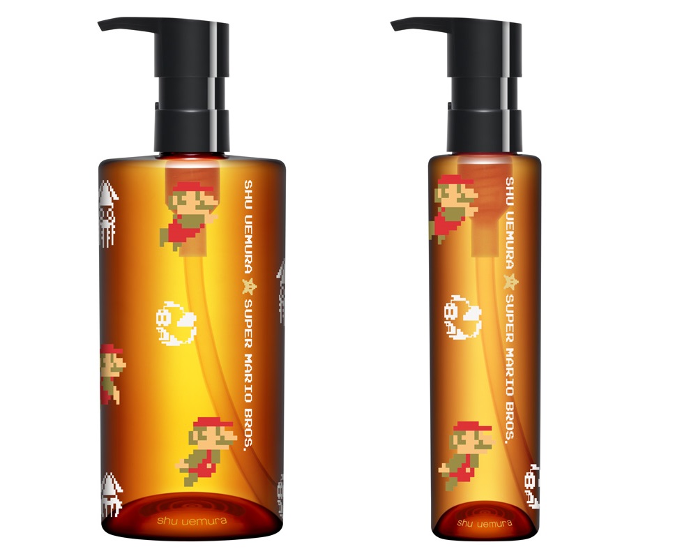 泳ぐマリオがデザインされたのは、クレンジングオイル。8つの植物オイル配合で、しなやかでなめらかな肌に。