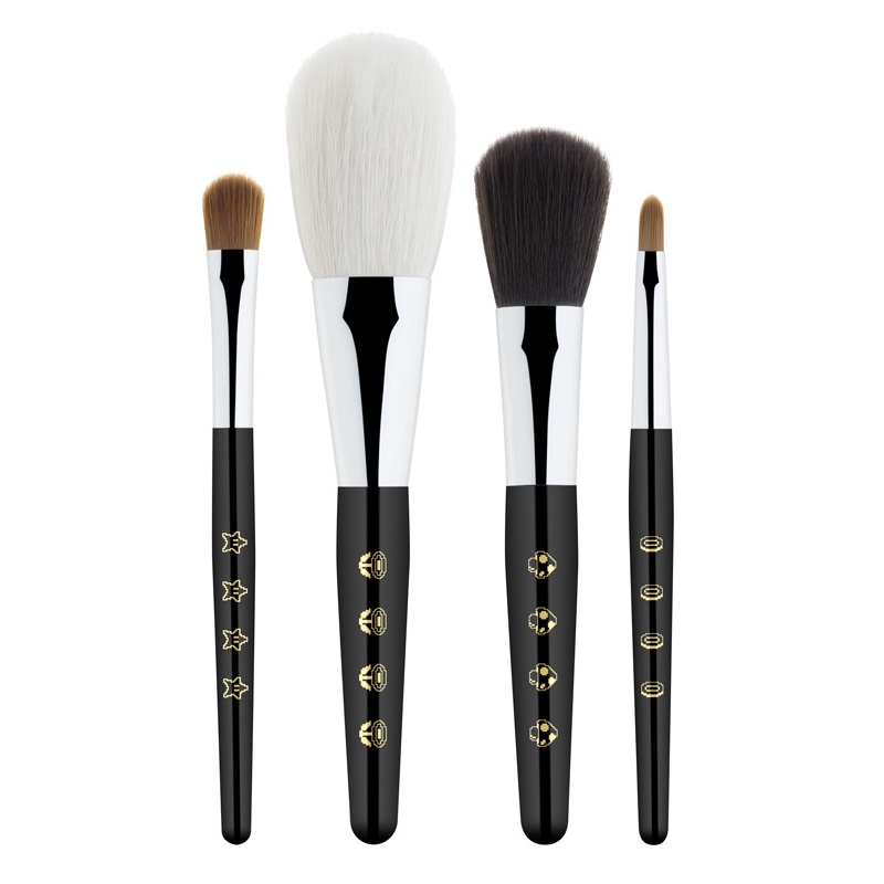 4本のプレミアム ブラシが詰まった限定ブラシセットは、ラウンド形のポップなポーチつき! 各ブラシにもマリオブラザーズのアイコンたちが。