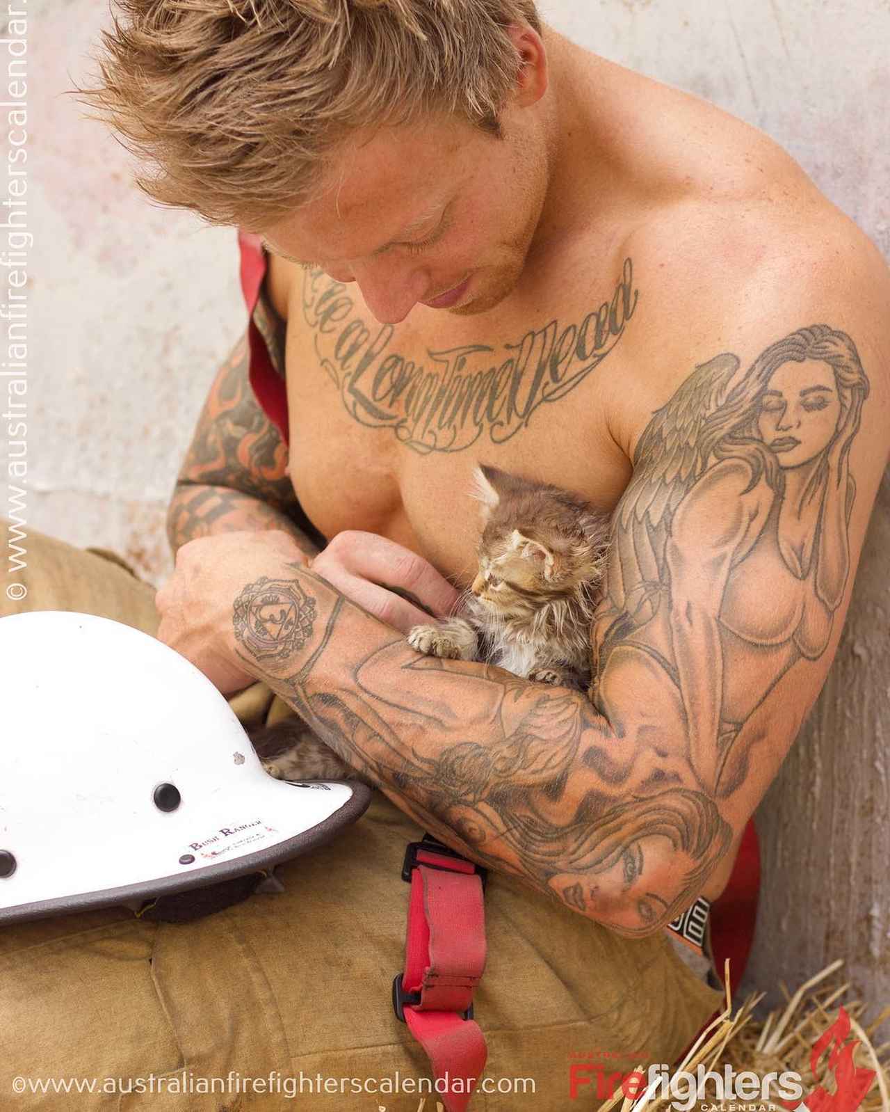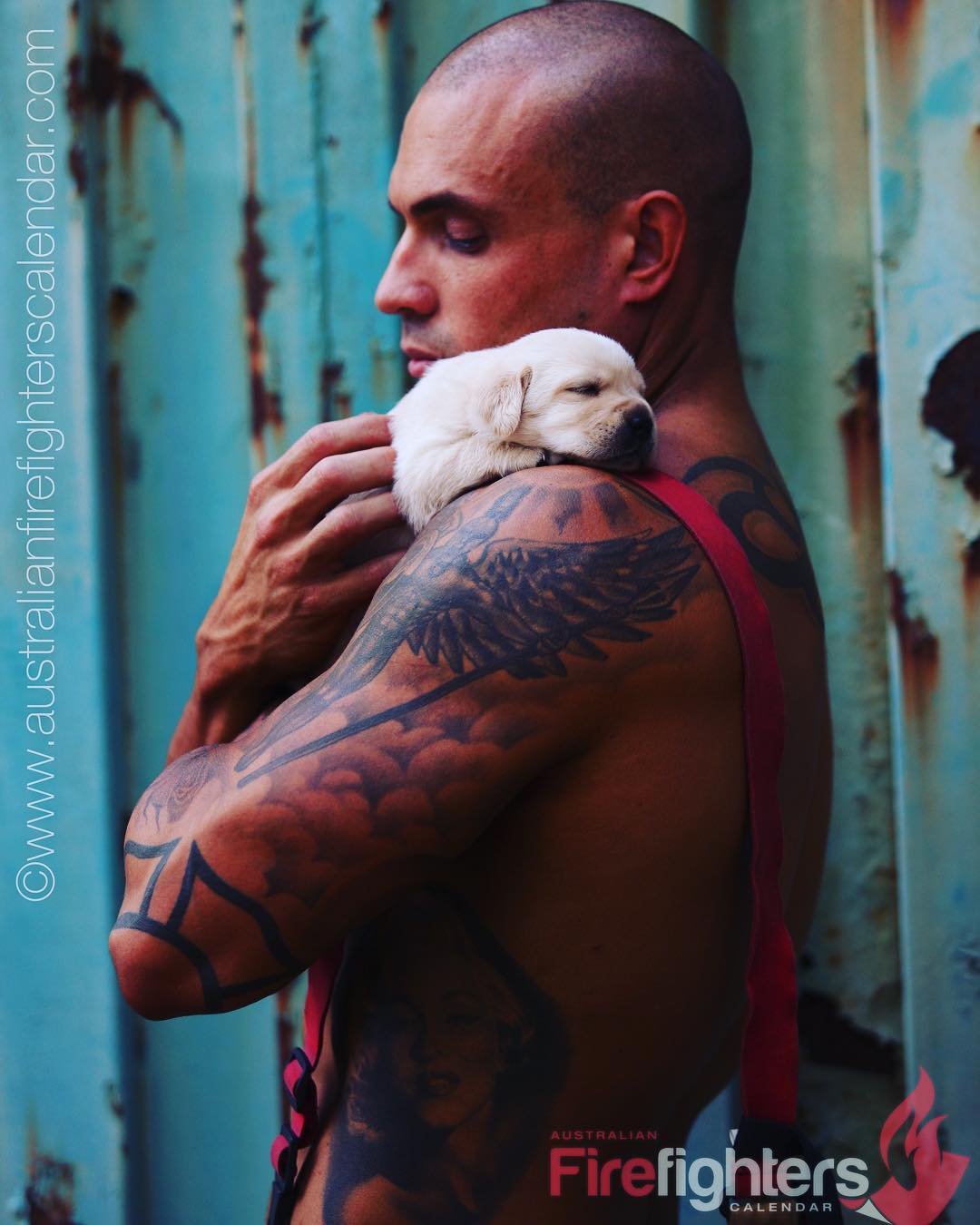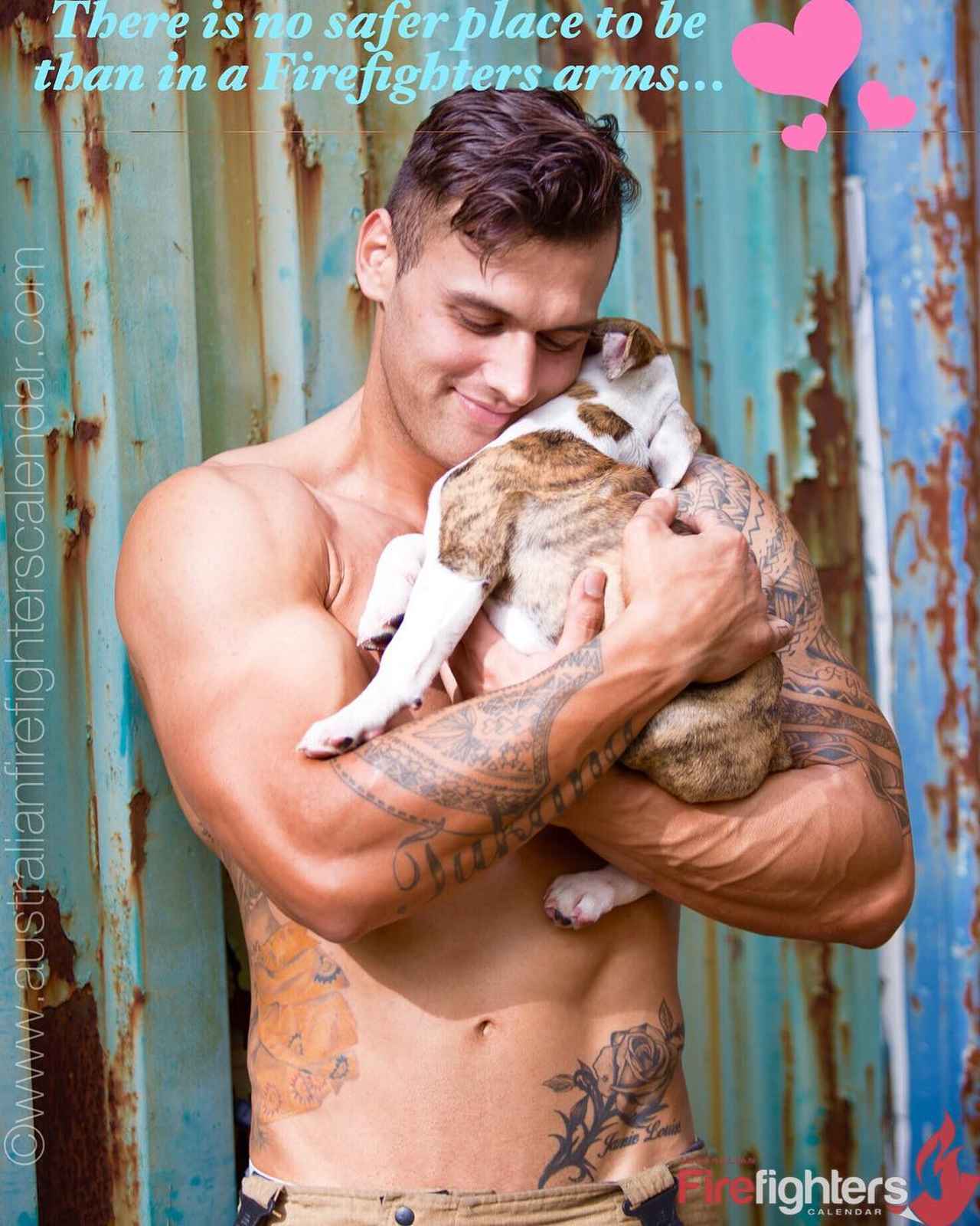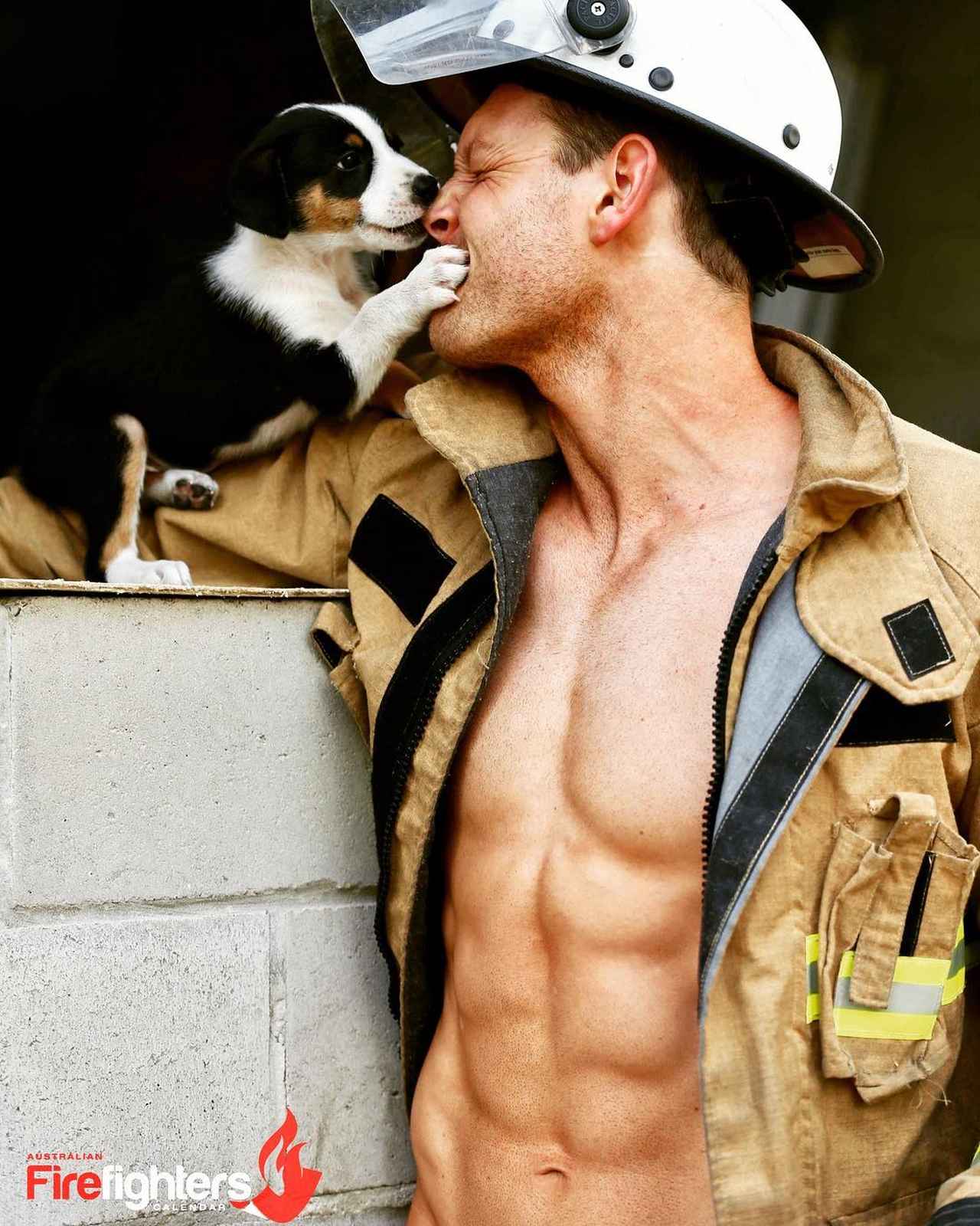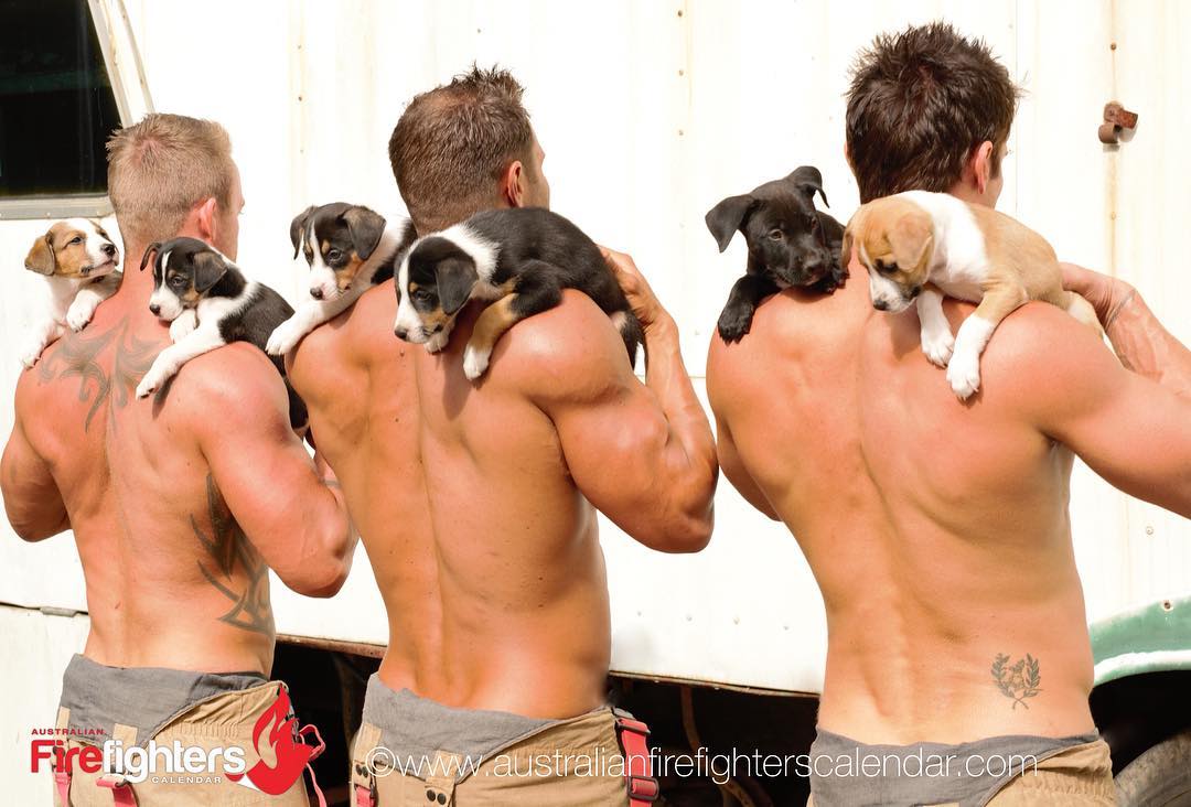 イケメンでマッチョな消防士たちが上半身裸で可愛らしい動物たちとたわむれる姿は、見る人のハートをあっちこっちにさらっている。