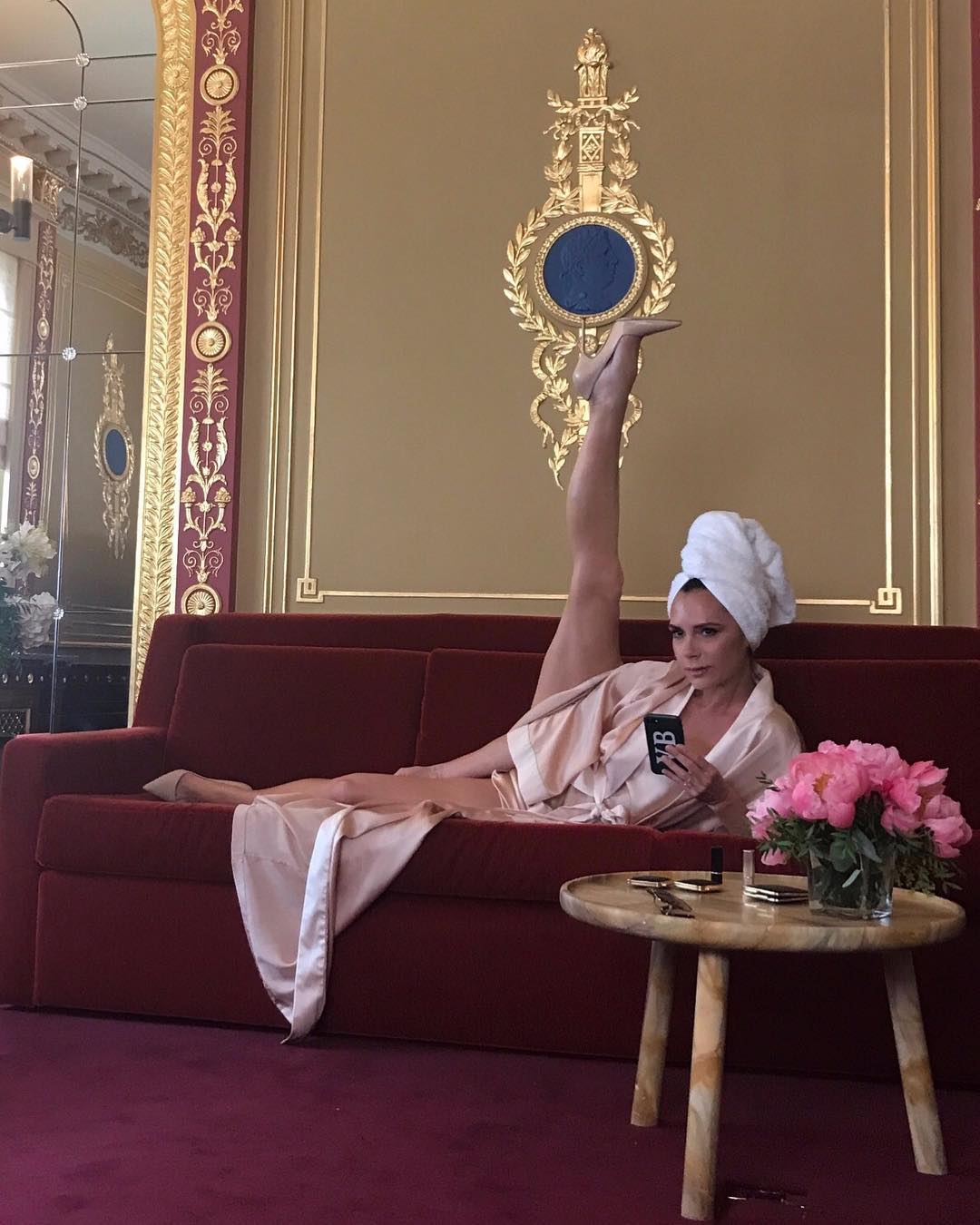 ヴィクトリアのポーズとして定着しつつあるのは、片足を天高く上げて美脚をアピールするポーズ。