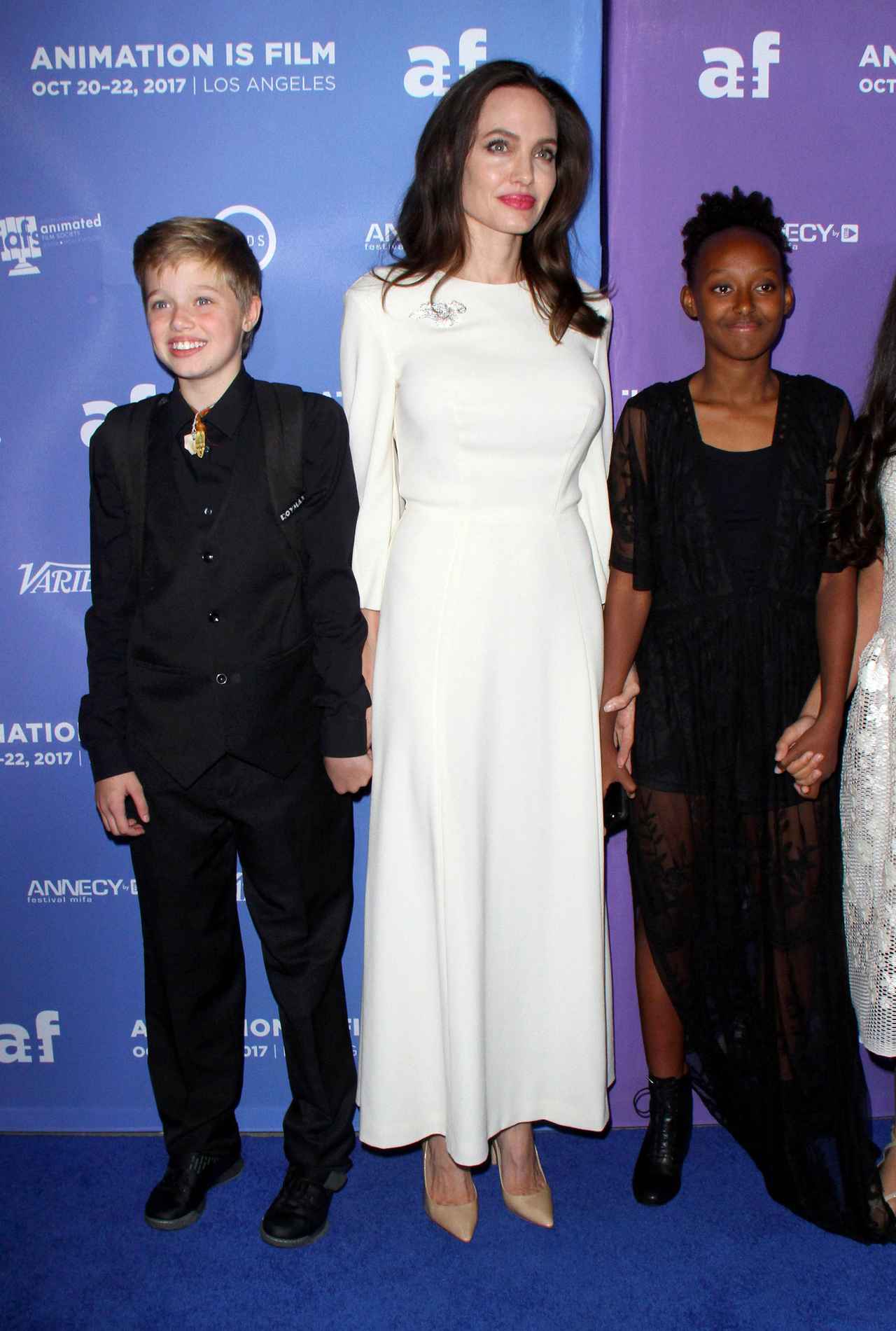アフガニスタンの少女を描いたアニメ映画『ザ・ブレッドウィナー(原題)』のプレミアに、人気女優のアンジェリーナ・ジョリーが娘のシャイロちゃん(11)とザハラちゃん(12)を連れて出席。