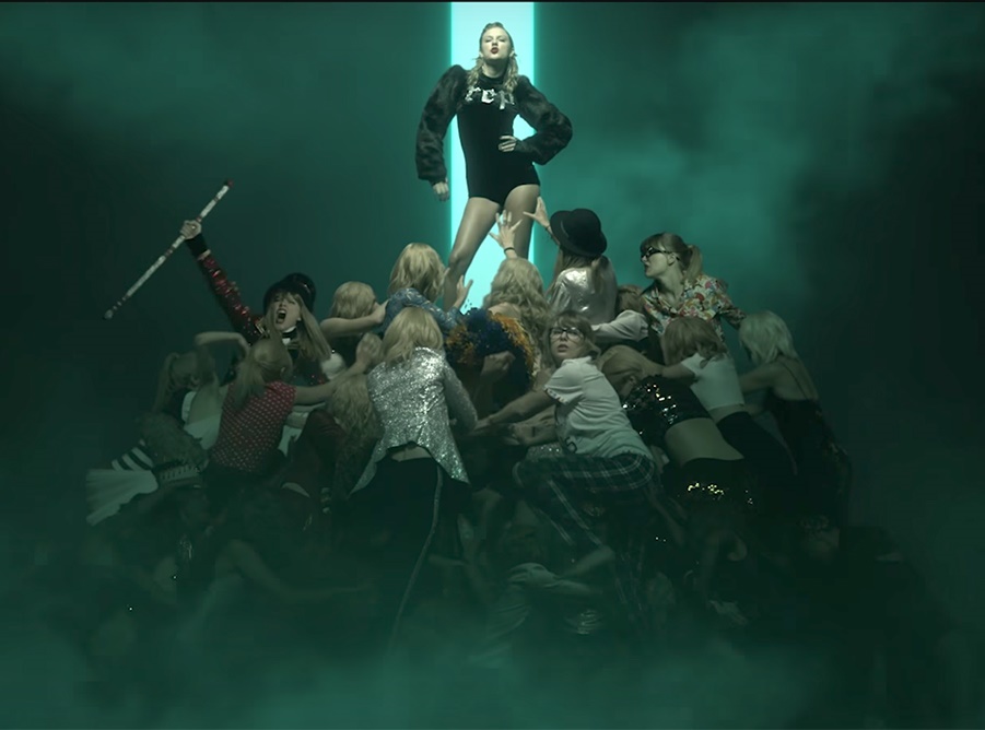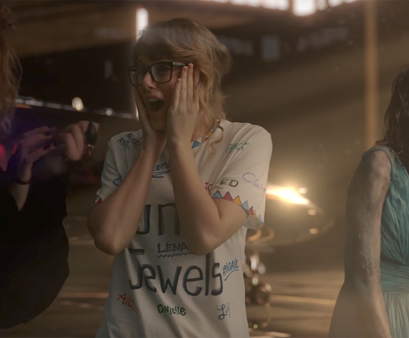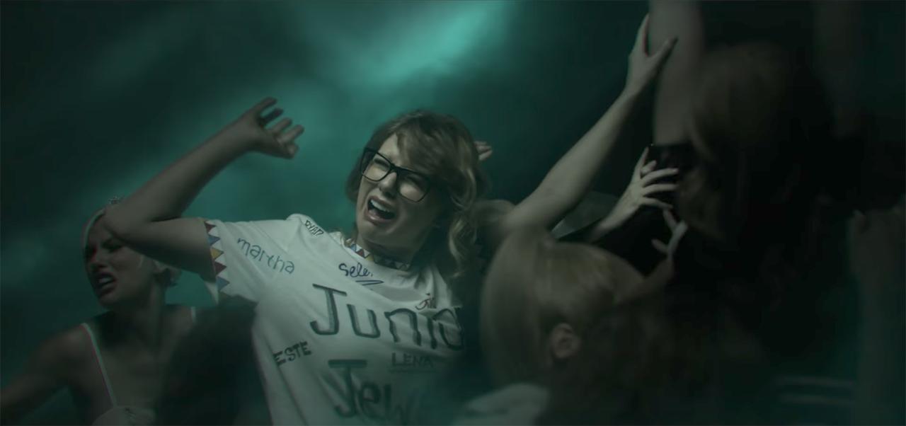 Taylor Swift appears to throw shade at Kim Kardashian, Kanye West, Katy Perry, Tom Hiddleston and Calvin Harris in her new music video. The video for Look What You Made Me Do, which premiered on August 27, sees Taylor killing off her former styles and personas and emerging as a zombie from a graveyard. There is a small dig at Calvin Harris with one of the tombstones holding the name Nils Sjöberg - the pseudonym she used to write This is What You Came For with her ex-boyfriend. Ex Tom Hiddleston does not escape unscathed, with her male backing dancers stripping off to reveal 'I heart T.S.' vests, similar to the vest Hiddleston was ridiculed for wearing at her July 4 party in 2016. Other parts of the video saw her bathing in jewels - a possible reference to the jewel heist Kim Kardashian suffered - and crashing a sports car into a T.S. branded store - with a look which appeared to have been inspired by Katy Perry. While Taylor stood slicing off the wing of a private jet with a chainsaw, her previous personas lined up in the airport hanger. A notable inclusion saw her wearing a silver gown and clutching a VMA moonman award - a nod to the time Kanye West infamously interrupted her acceptance speech at the 2009 MTV Video Music Awards. Other looks included her country music era, her You Belong With Me video look, the circus ringmaster-style costume she wore for her 2012 performance at the MTV European Music Awards and her ballerina costume from her Shake It Off video.