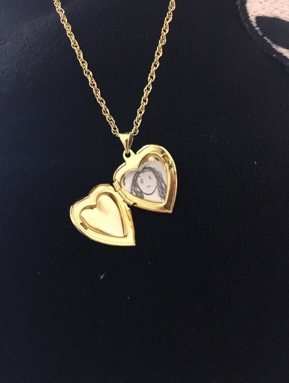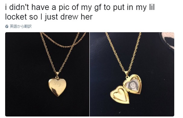 彼女の似顔絵をペンダントに入れた男性は、「小さなロケットペンダントに入れる写真がなかったから描いてみた」とその写真と一緒にツイート。