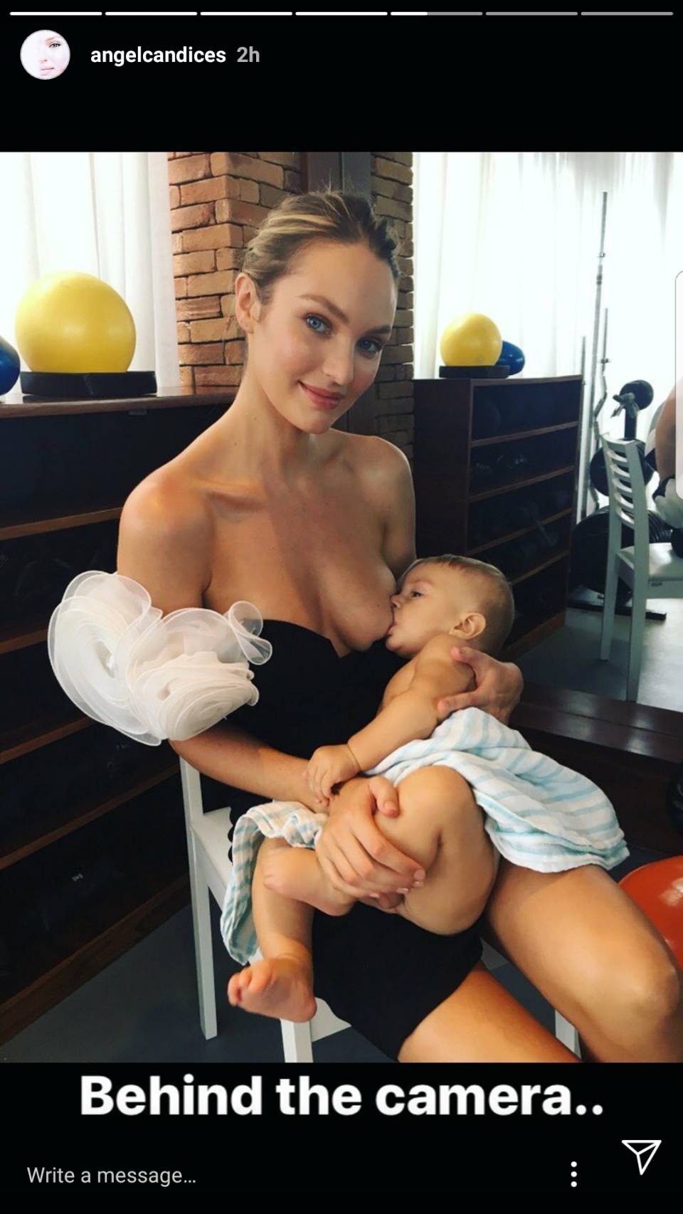 人気モデルのキャンディス・スワネポールが、撮影現場で授乳する姿を公開した。