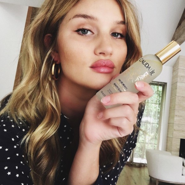 ロージーは愛用のスキンケアアイテムを聞かれ、コーダリーのビューティーエリクシールという美容液と回答。このアイテムについて、「10年前にファッションショーのバックステージで見つけたの。それから毎日使っているアイテムよ。本当に素晴らしいの。暑い日に肌に吹きかけるのがお気に入りで、バッグに入れてよく持ち歩いているわ。機内の保湿アイテムとしても最高」とベタ褒め。