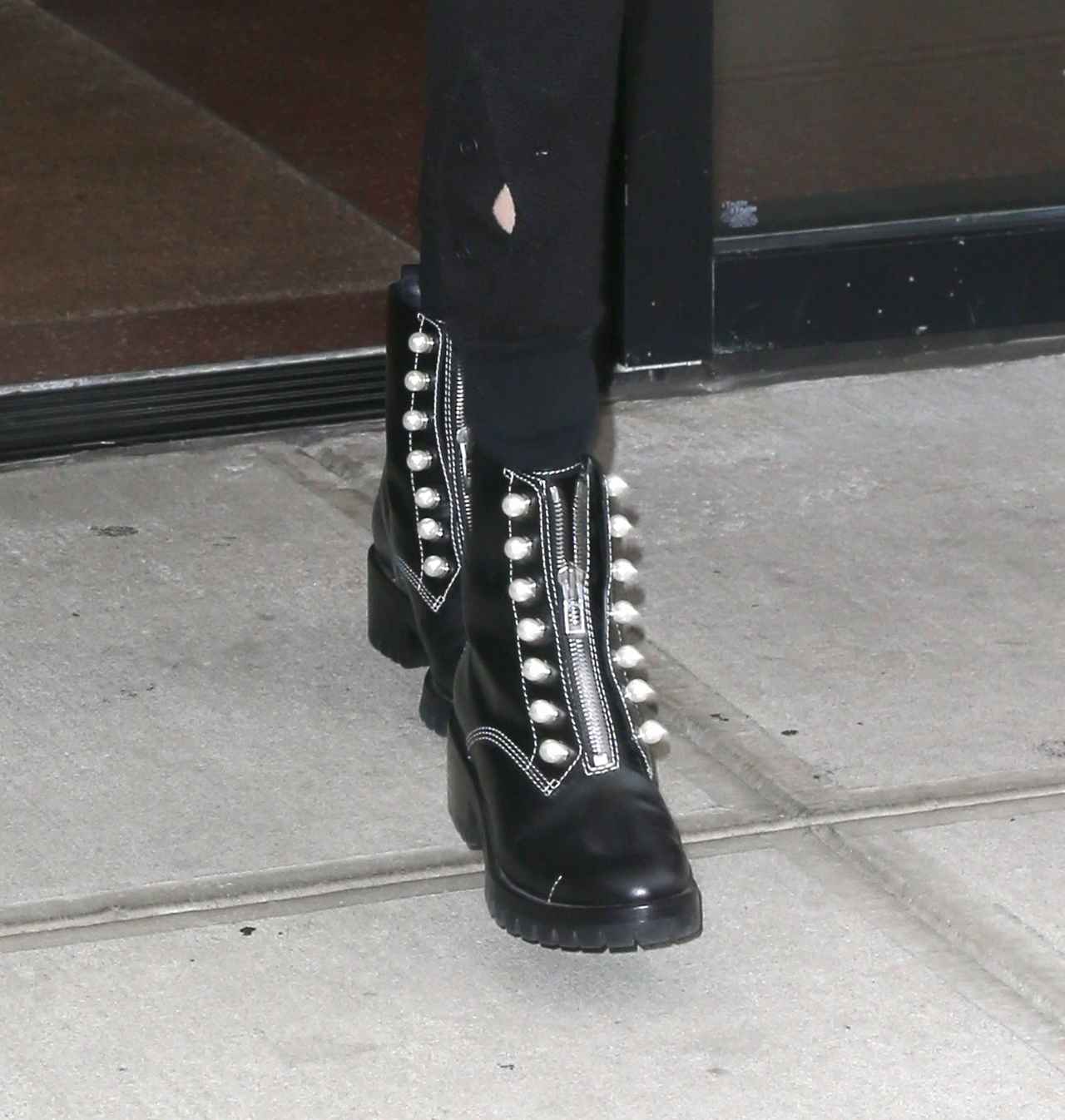 ブーツは、ジジがお気に入りで履き回している3.1 Phillip Limのもの。サイドにパールの装飾が付いており、エッジーながらもさりげなく高級感をアピール。