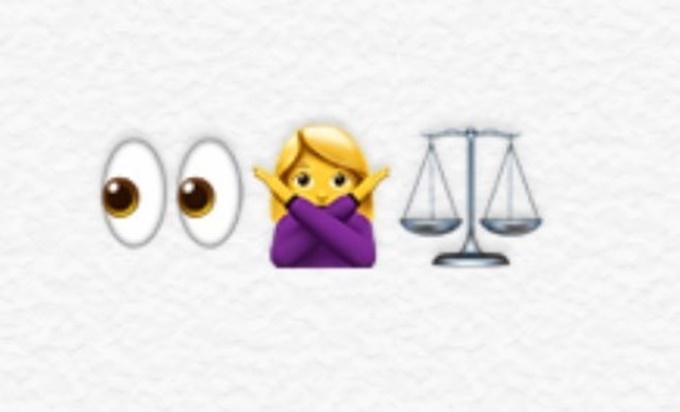 I(アイ)にはEYE(アイ=目)の絵文字を使用。バツマークを作る絵文字でCAN’T(できない)を表現して、「平ら」や「平等」という意味も持つEVENには天秤を用いている。